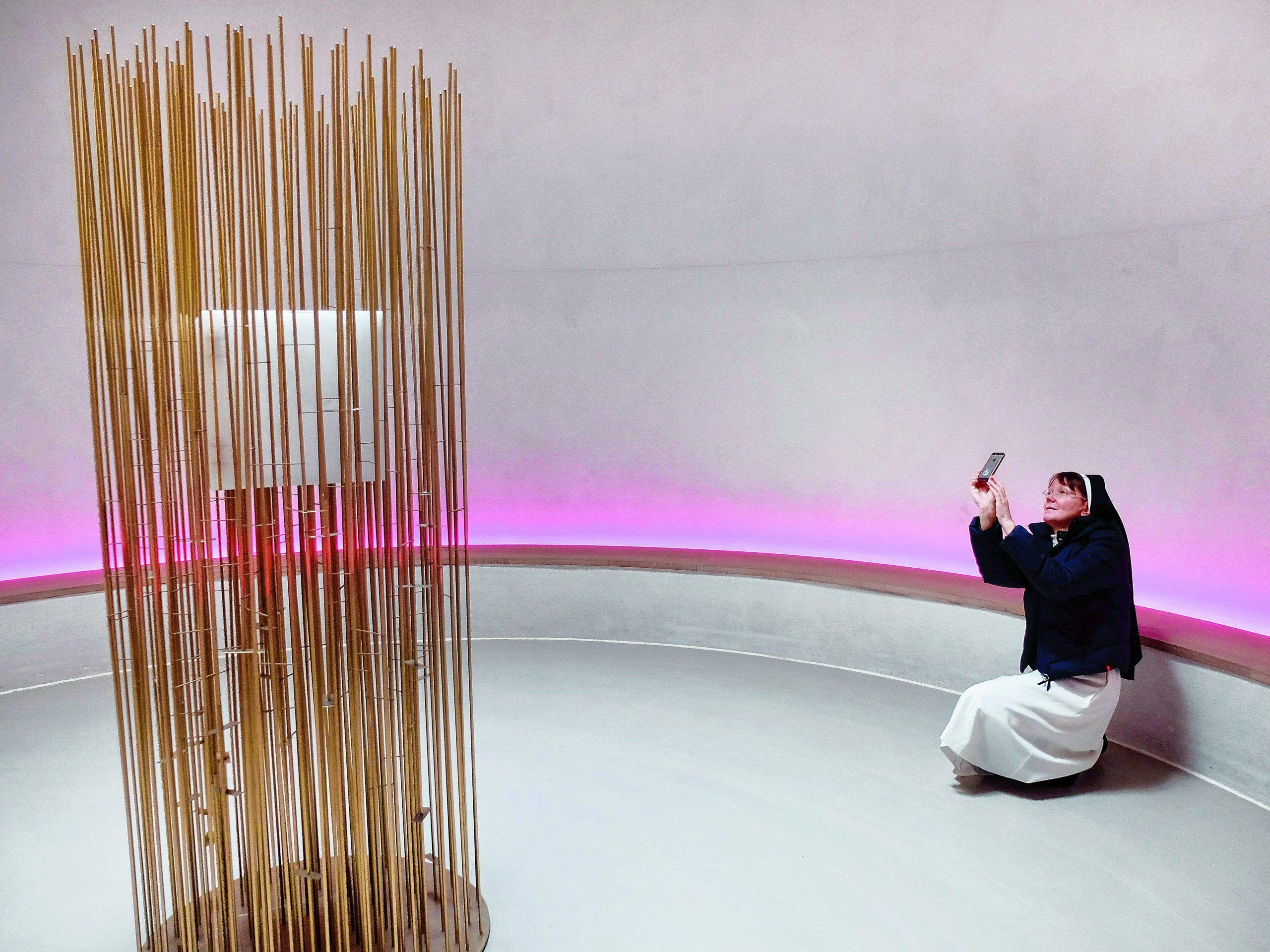 Schwester Diana aus Riga fotografiert den Tabernakel in der Kirche. Foto: Theresa Meier7Bonifatiuswerk