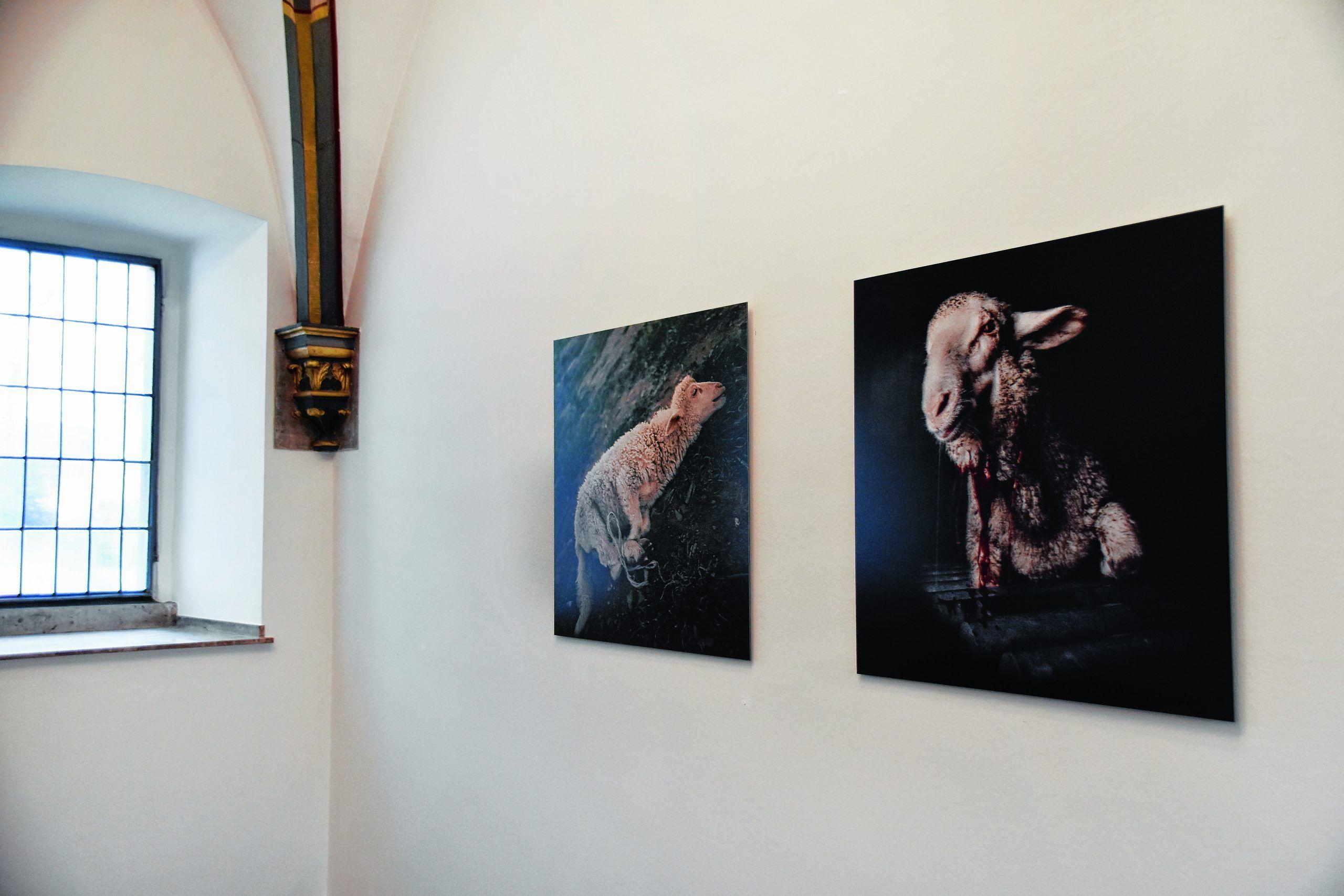 Um 1990 war sie auf Sardinien und lernte dort die Hirten kennen. Weil sie vorher an einem Buch zu jüdischen Porträts viel im Alten Testament, besser dem Ersten Testament gelesen hat und ihr da das Thema Opfer begegnet war, erkannte sie im Tun der Hirten die Geschichte von Kain und Abel. Denn Hirten hüten die Schafe nicht nur, sie schlachten sie auch. Koelbl durfte die Hirten bei ihrer Arbeit begleiten und fotografieren. Entstanden ist dabei der Bilderzyklus „Opfer“, drei Bilder daraus sind in der Marktkirche zu sehen.
