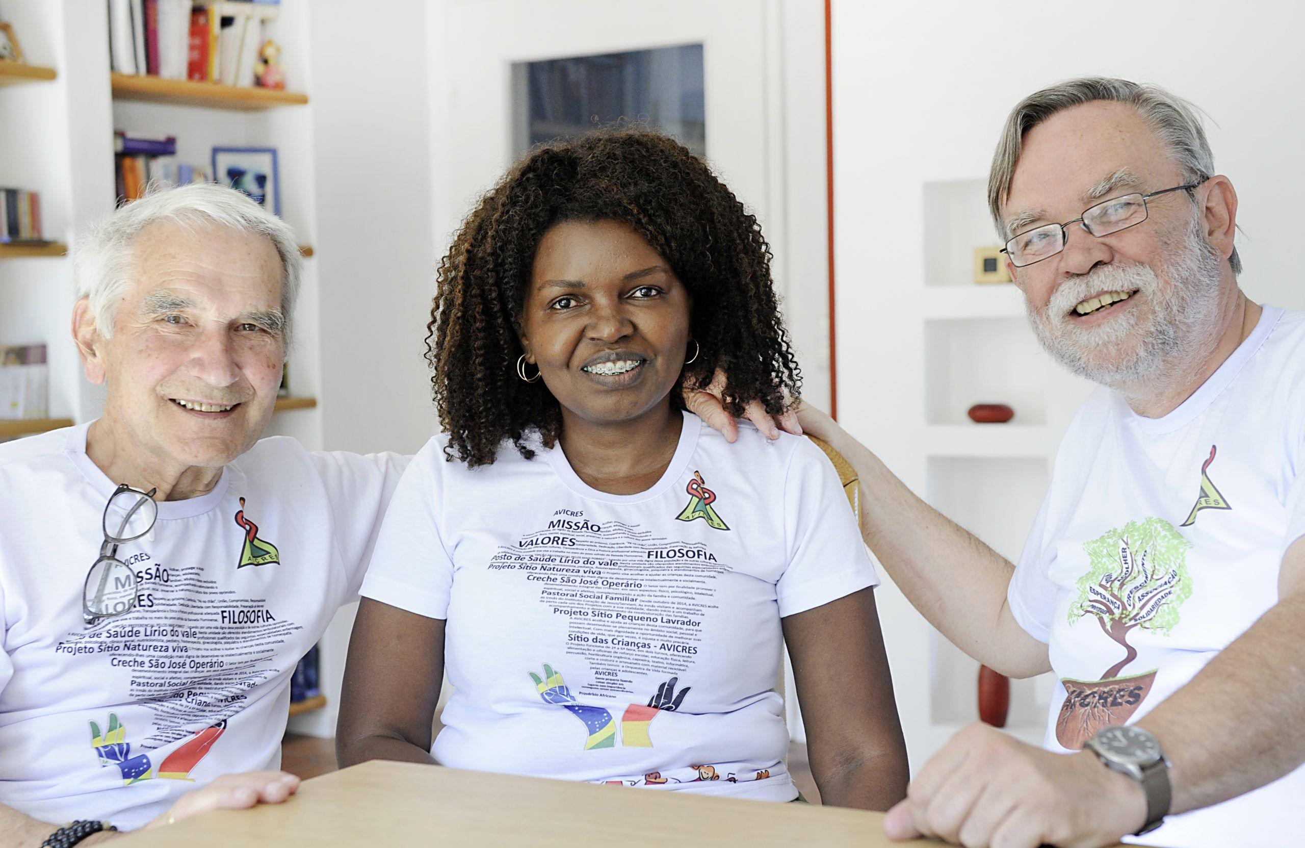 Martiliana Rodrigues ist die Vorsitzende der brasilianischen ­AVICRES, Karl-­Heinz Herting (r.) Vorsitzender der deutschen. Der Paderborner Theologe ­Johannes Niggemeier (l.) gründete das Hilfswerk vor 31 Jahren in ­Brasilien. Foto: Andreas Wiedenhaus