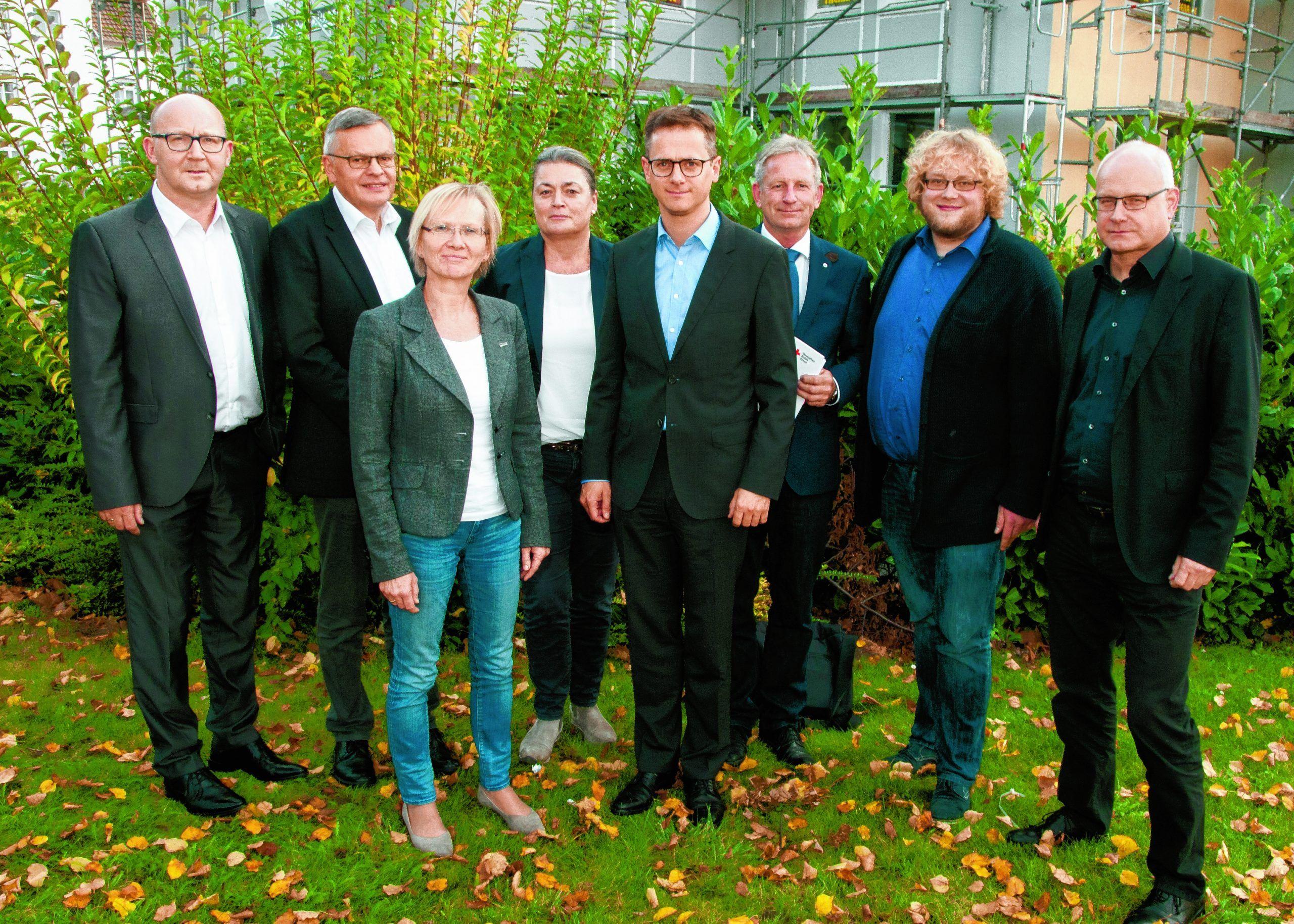 Die Themen Migration und vor allem Pflege standen auf der Tagesordnung des Gespräches der Wohlfahrtsverbände mit Carsten Linnemann. Foto v. l.: Jürgen Grosser (Geschäftsführer Bildungszentrum St. Johannisstift), Ulrich Brüll (DRK-Kreisgeschäftsführer), Jutta Vormberg (Vorstand Diakonie Paderborn-Höxter), Ursula Hoentgesberg (Geschäftsführerin AWO-Kreisverband Paderborn), Carsten Linnemann (MdB), Bernd Horenkamp (DRK-Kreisgeschäftsführer), Jan-Philipp Krawinkel (Kreisgruppengeschäftsführer Der Paritätische), Patrick Wilk (Vorstand Caritasverband Paderborn). Foto: Flüter