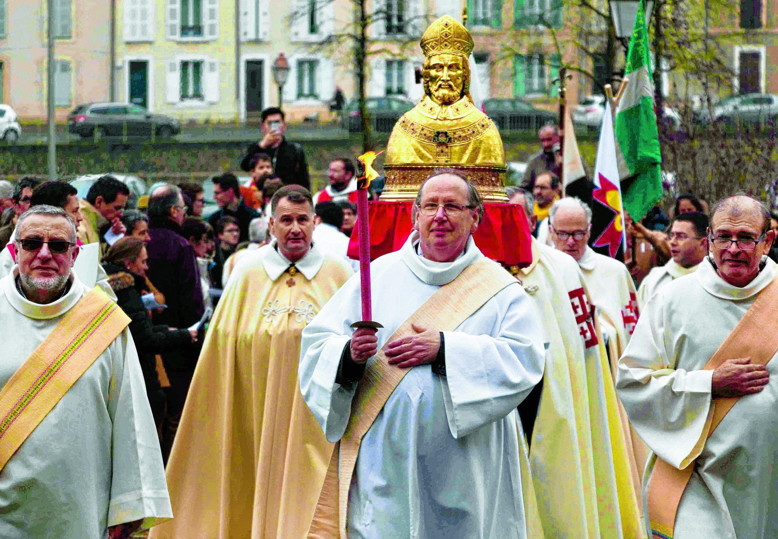 Die Prozession mit der Reliquienbüste des heiligen Julian führte in diesem Jahr vom Fluss Sarthe zur Kathedrale von Le Mans. Foto: Gorny