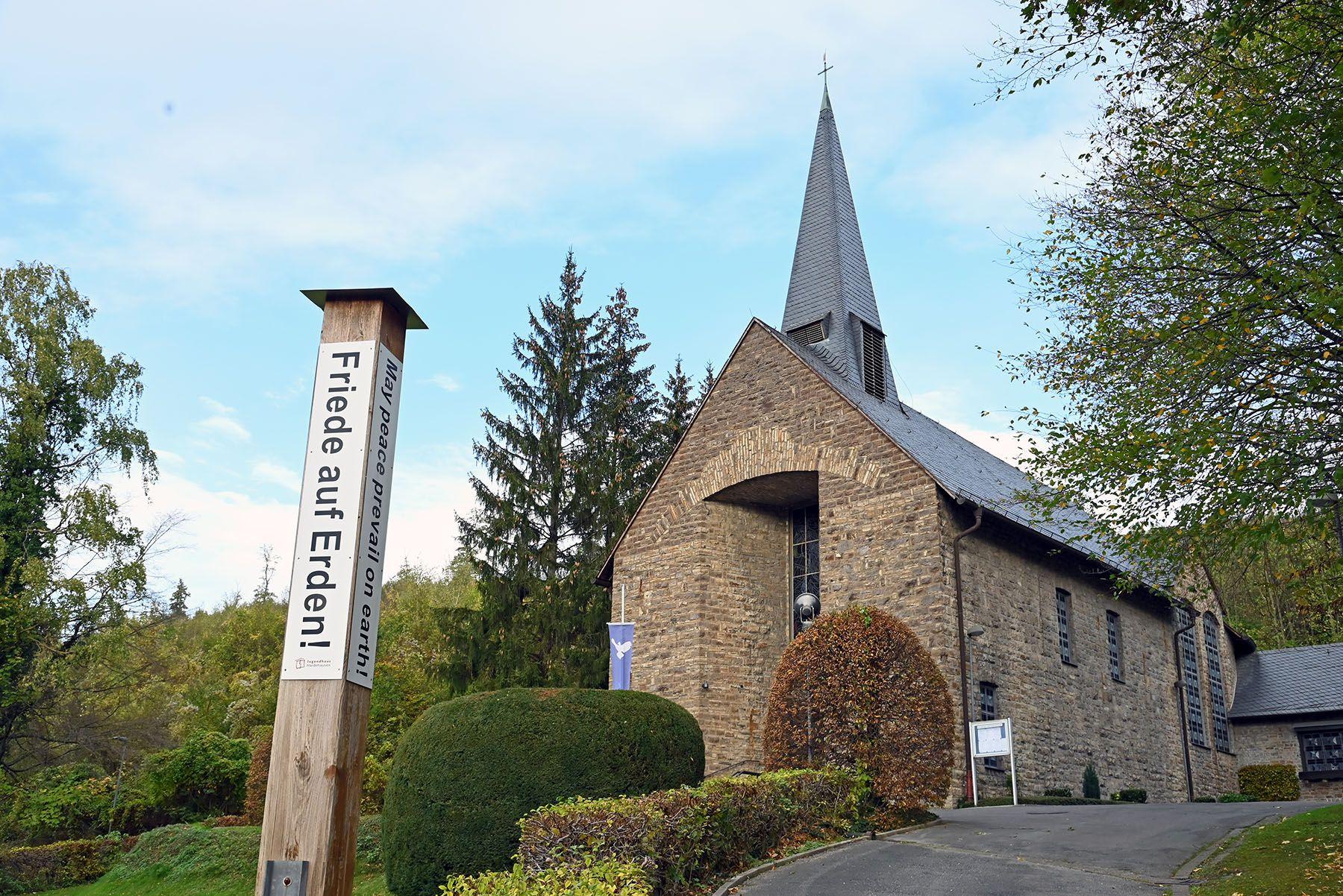 In Oberrödinghausen, hoch über der Hönnetalstraße von Menden nach Balve, thront die Kirche „Maria Königin des Friedens“. Als Ort des Gebets und Gedenkens erinnert sie an die Verbrechen der Nazidiktatur in der Region.