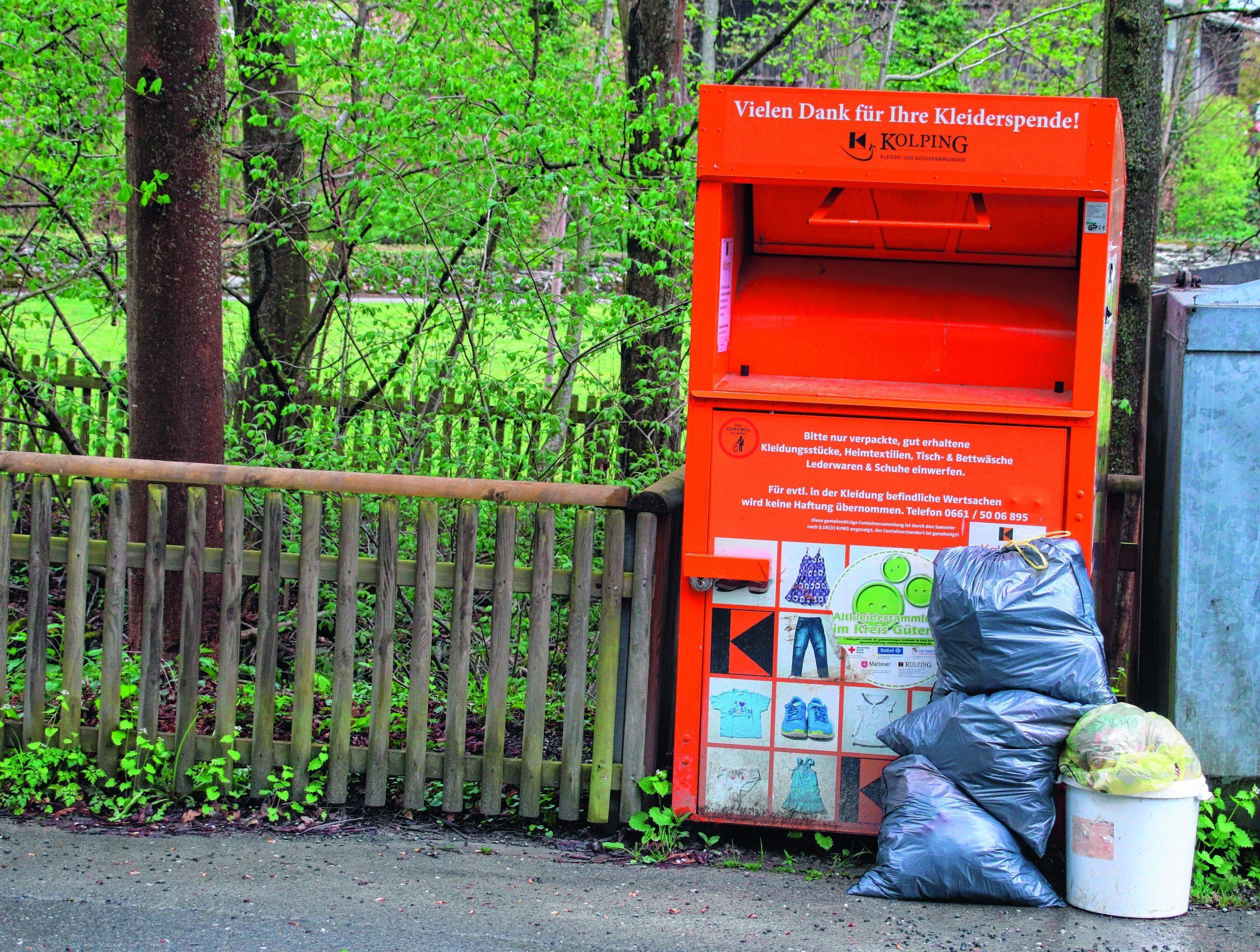 Sind die Container voll – wie gerade jetzt vielerorts – werden die Altkleider häufig davor abgelegt. Foto: Kolping / Polzer