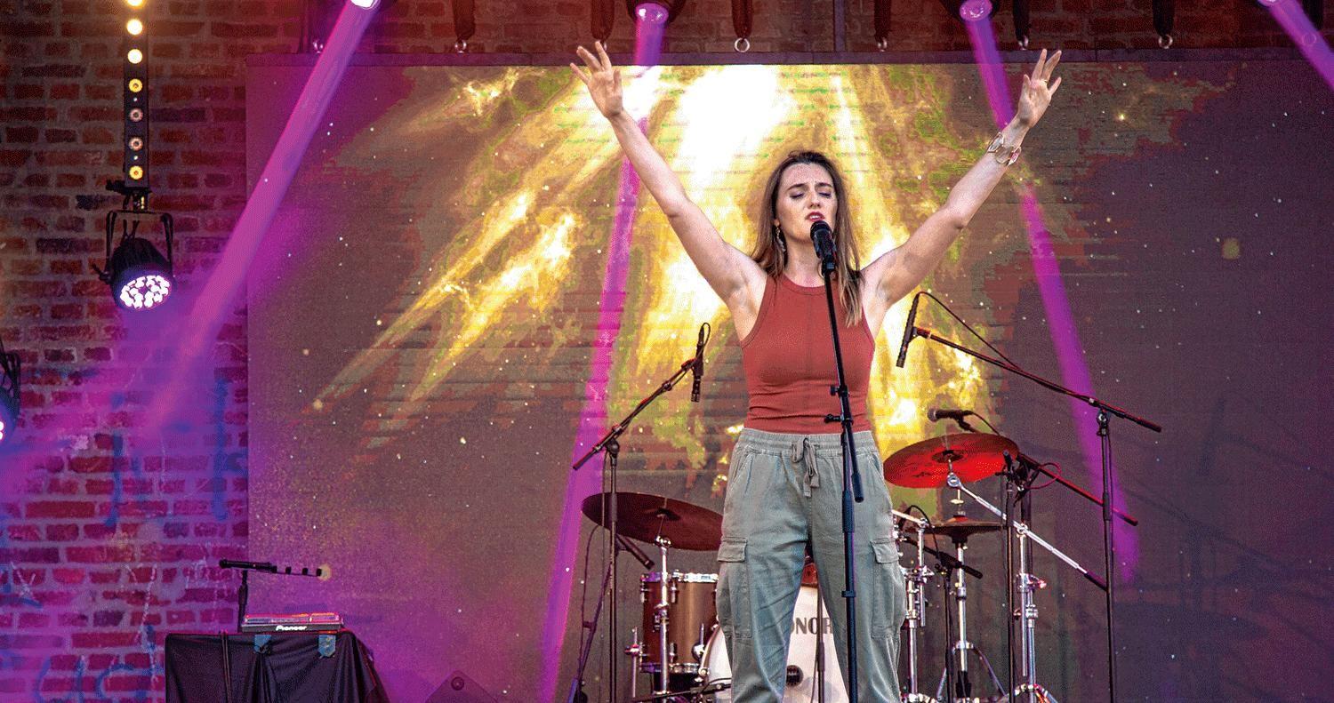 Die aus den USA kommende Sängerinn Hannah Schaefer, die in Siegen auftrat, gewann bereits mehrere Musikpreise. Im Jahr 2020 veröffentlichte die 24-jährige ihr Album „Who I am“. (Foto: Amadeus Kuhn)