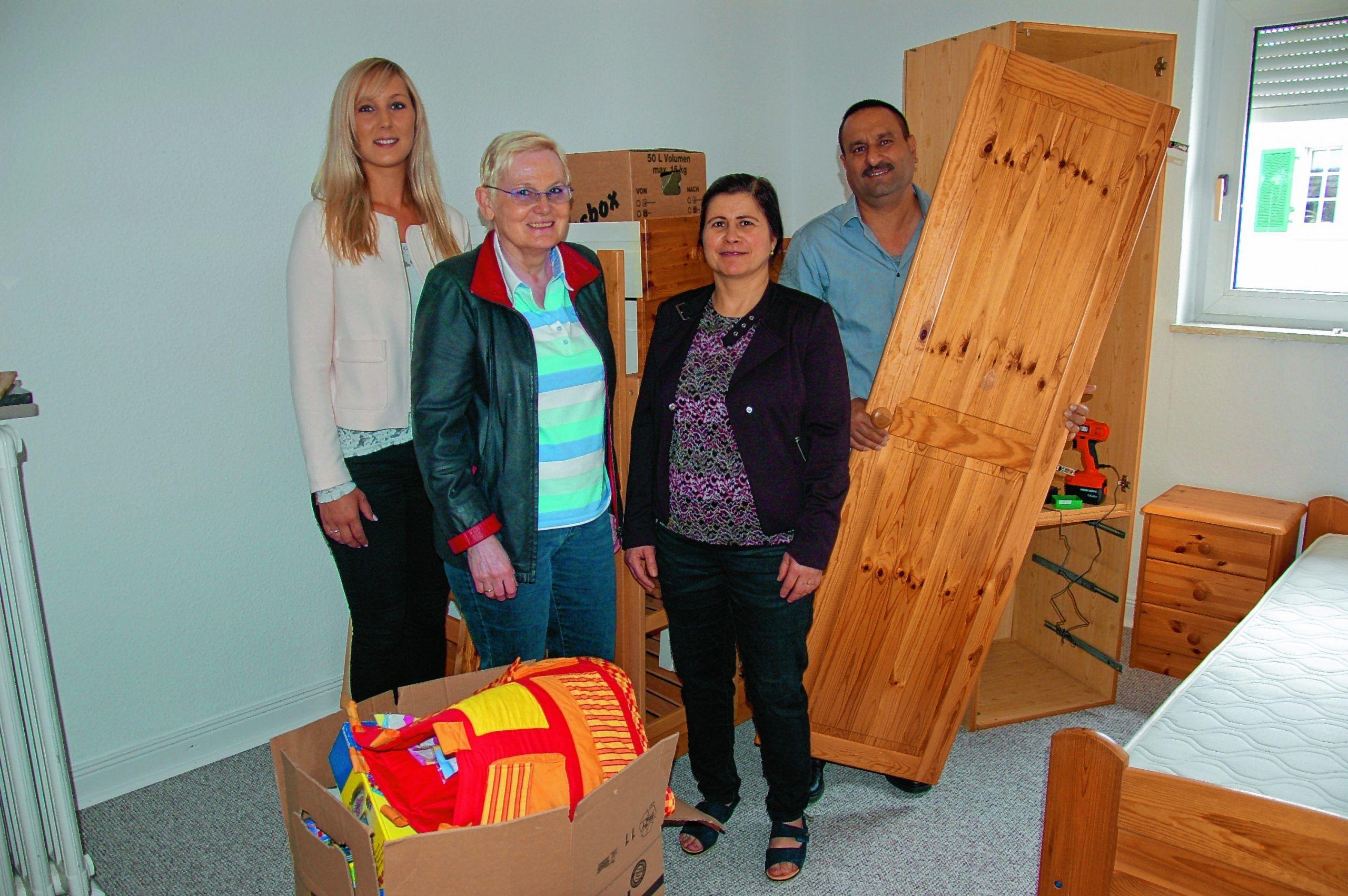 Für Said Khudida Rashu und Ehefrau Goly Murad Alias beginnt in Bad Sassendorf ein neues Leben. Dabei helfen Iris Rosenthal und Monika Kobbé. Foto: Caritas