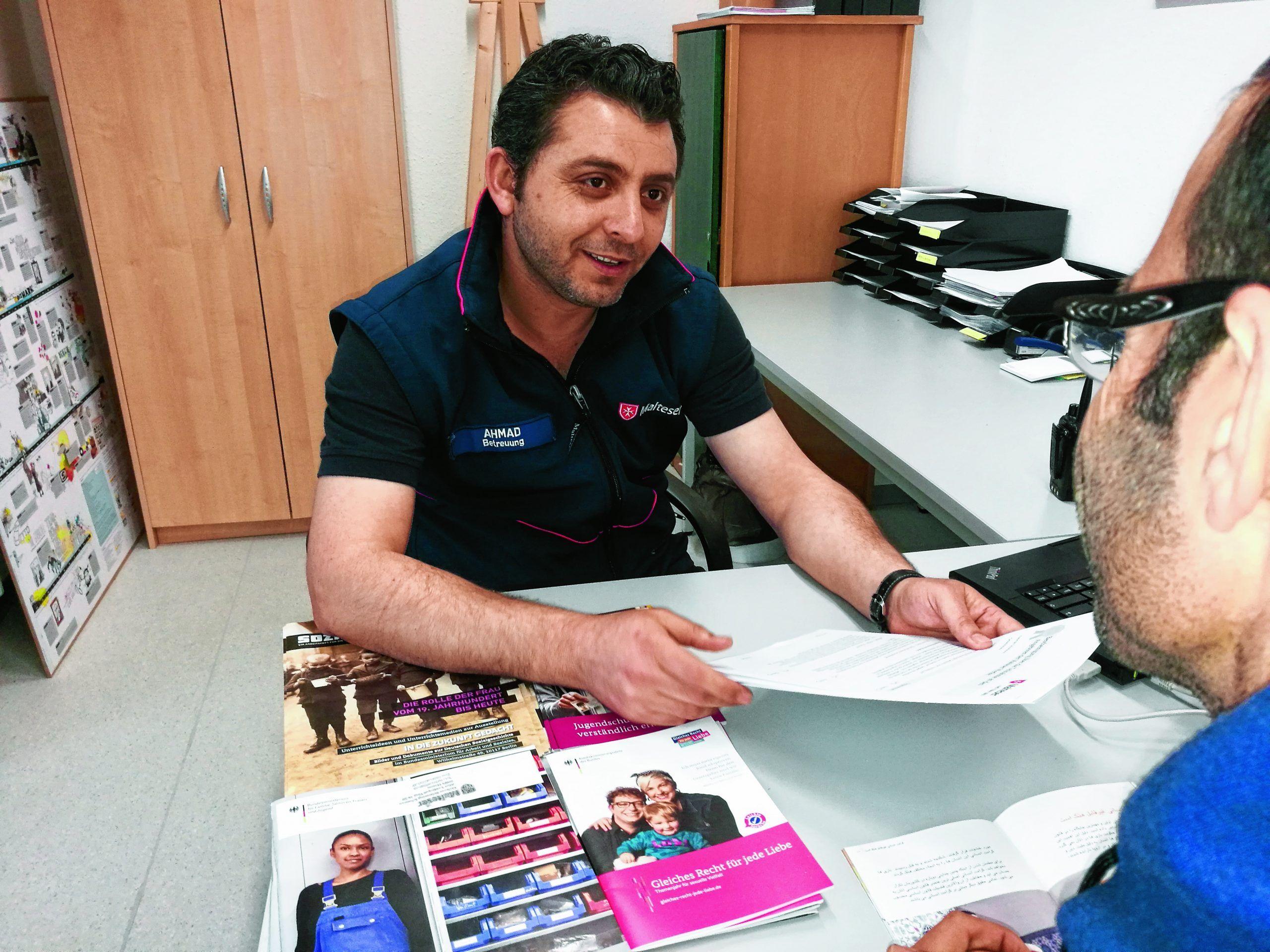 Ahmad Elias arbeitet im Projekt „Jobscreening“ der Malteser Werke in Hamm. Dabei erhalten Geflüchtete wichtige Informationen rund um Arbeit, Ausbildung und das Sozialsystem. Foto: Malteser/Tobias Haubert