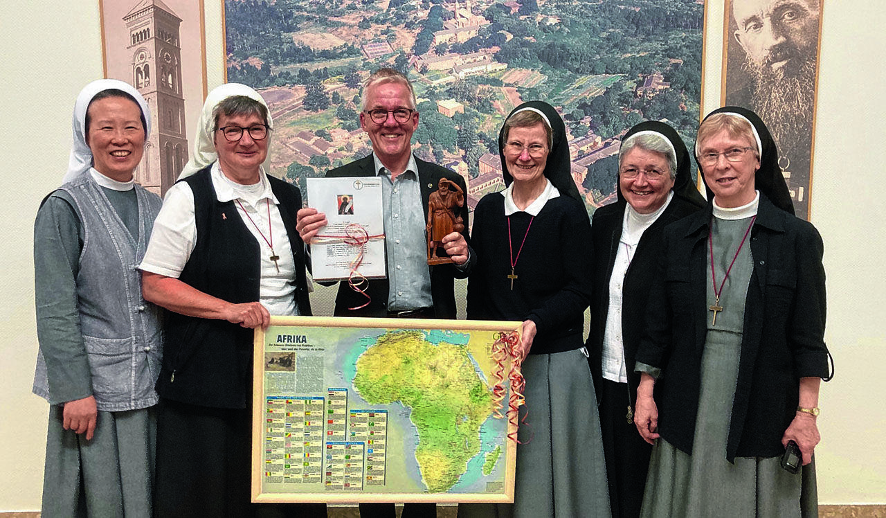 Sr. Magdalena dankte im Namen der Provinzleitung und der Schwesterngemeinschaft Sr. Angelika für ihren langjährigen umsichtigen Dienst in der Verwaltung und überreichte ihr ein Bild von Afrika, dem Geburtsland der Kongregation. Wolfgang Hansjürgens wünschte sie Gottes Segen für seine neue Aufgabe. Er erhielt eine kleine Figur des heiligen Josef, unter dessen Schutz er nun in besonderer Weise stehen soll.