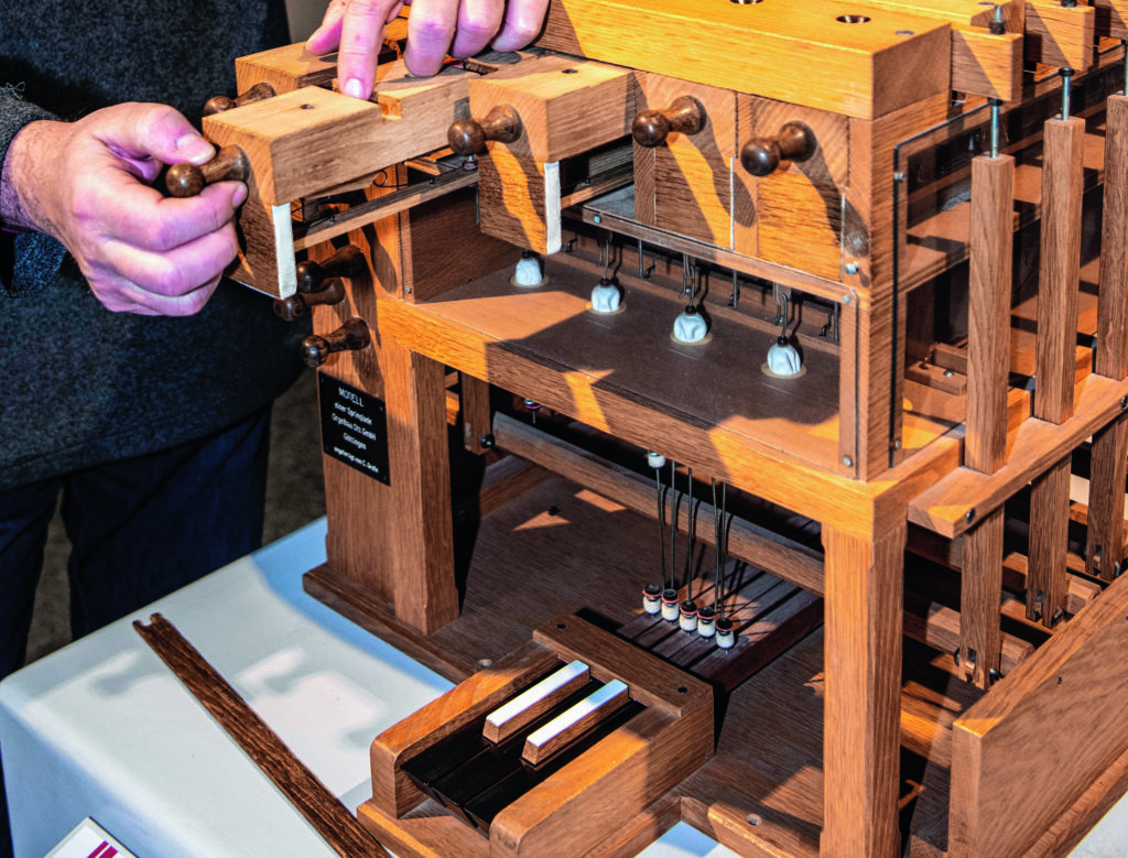 Ist das möglich, fragt sich der verblüffte Zuschauer vor dem Glaskasten, der die Werkstatt birgt. Natürlich ist das möglich. Vor dem Hintergrund einer Handwerkstradition, der wir über Jahrhunderte Wunderwerke wie die Borgentreicher Orgel zu verdanken haben, ist auch eine funktionierende Orgelwerkstatt im Mikroformat eigentlich nur normal.