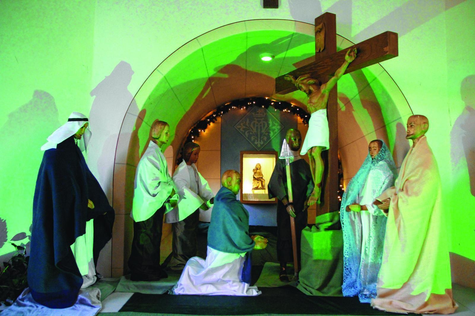 Insgesamt 14 Stationen werden bis zum 31. März gezeigt. Die Besichtigung ist aufgrund der Corona- Pandemie allerdings ausschließlich durch das schmiedeeiserne Gitter möglich. Zusätzliche Bilder folgen an Gründonnerstag, Karfreitag, Karsamstag, Ostersonntag, Ostermontag sowie in der Osterwoche. An Karfreitag kommt dann das komplette Ensemble mit acht Figuren zum Einsatz – ein besonders ergreifendes Bild.