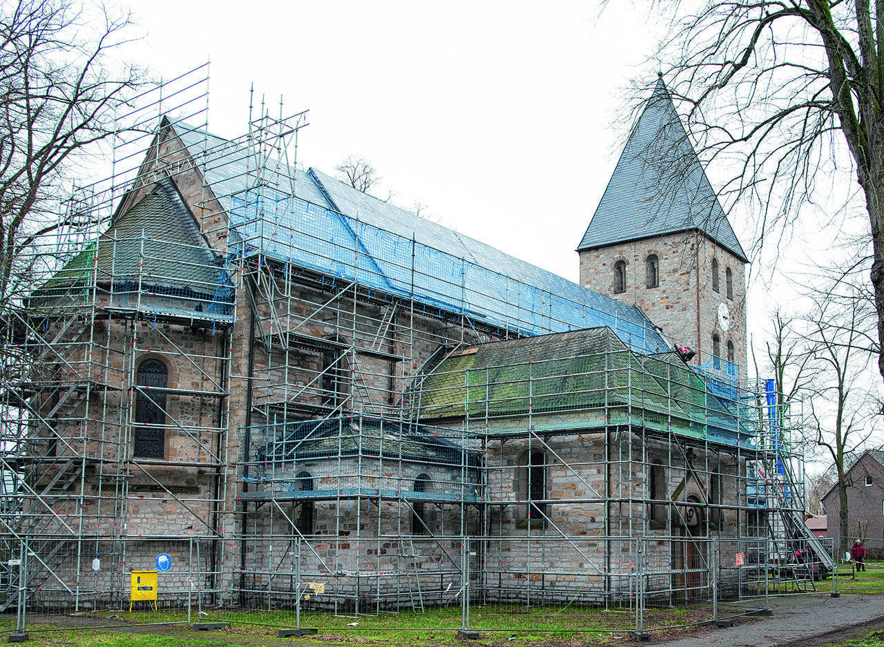 Delbrück-Boke (flü). 35 Jahre nach der letzten Außen­renovierung waren die Arbeiten an der Pfarrkirche St. Landolinus dringend notwendig. Das Schieferdach war vor 61 Jahren das letzte Mal eingedeckt worden. ­Entsprechend war der ­Zustand der Schieferabdeckung. Viele Platten waren beschädigt oder fehlten ganz, Nägel waren durchgerostet.