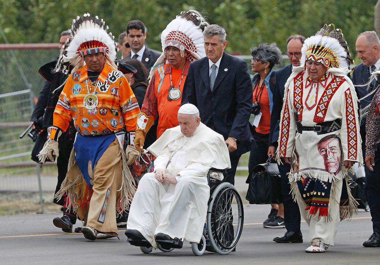 Jahresausblick 2023 – Im vergangenen Jahr war Franziskus bei Reisen – hier in Kanada – auf den Rollstuhl angewiesen. Auch in diesem Jahr wird sein Gesundheitszustand bei der konkreten Terminplanung eine große Rolle spielen. (Foto: KNA)