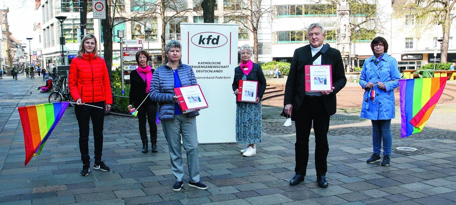 Paderborn (Mid). Mit 4700 Unterschriften war die Resonanz auf die Online-Petition „Segen für alle“ des kfd-Diözesanverbandes Paderborn unerwartet groß. „Schon nach zwei Tagen ging die Aktion mit 1000 Unterschriften durch die Decke. Wir haben unser angestrebtes Ziel von 2000 auf 3000 erhöht und bis zum Stichtag am 16.–April waren es 4700“, erklärt die kfd-Diözesanvorsitzende Katharina Brechmann. Zusammen mit ihren Kolleginnen aus dem Diözesan-Leitungsteam übergab sie die Petition an Monsignore Dr.Michael Bredeck. Er ist der neue Bereichsleiter Pastorale Dienste im Erzbischöflichen Generalvikariat.