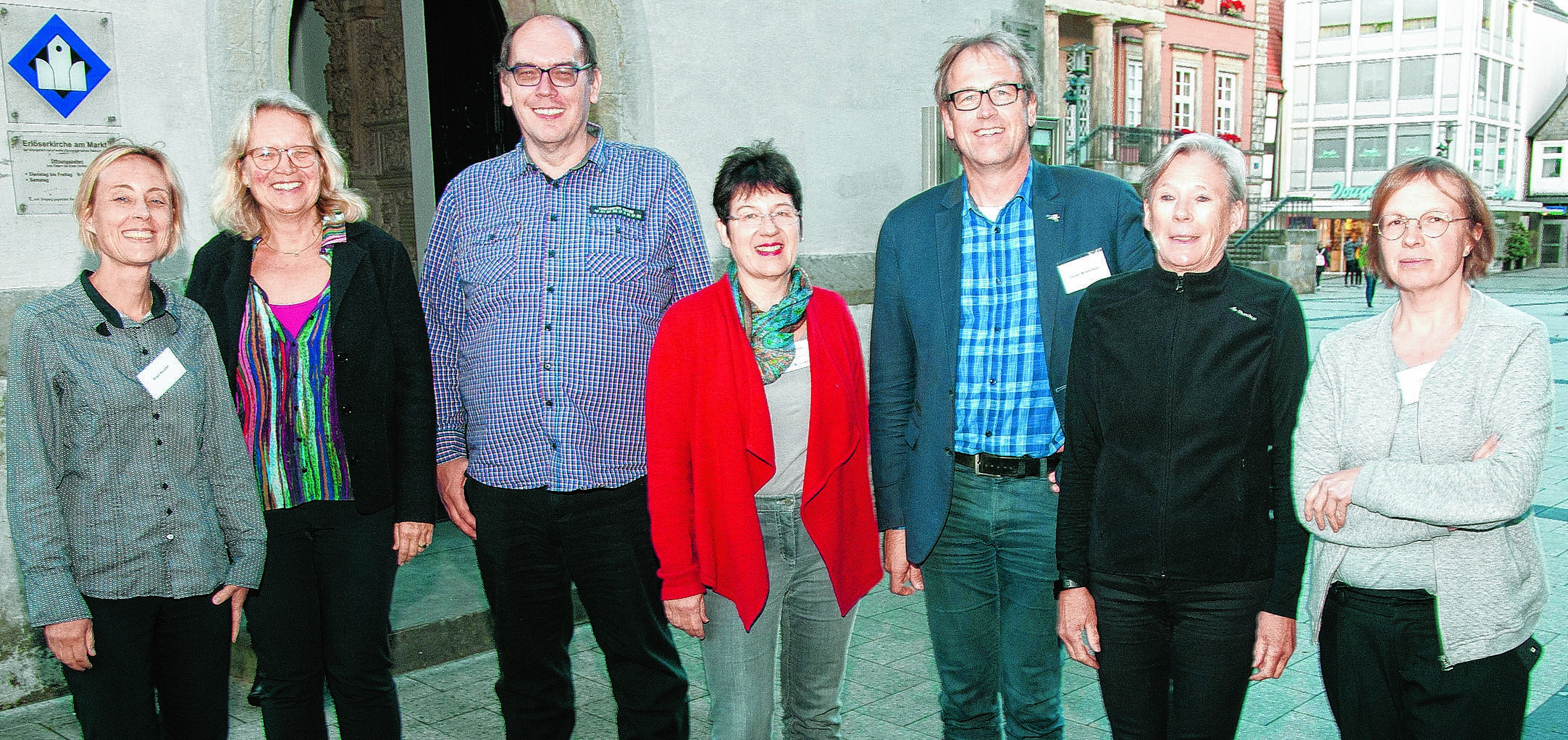 Kritischer Blick auf die Asylpolitik (von links): Birgit Naujoks (Flüchtlingsrat NRW), Katharina Kleine-Vennekate (Ökumenisches Forum), Frank Gockel (Flüchtlingshilfe Lippe), Jutta Ehlebracht-Krause (Beratungszentrum Lippische Landeskirche), Pfarrer Dieter Bökemeier (Flüchtlingsbeauftragter Lippische Landeskirche), Rechtsanwältin Catrin Hirte-Piel und Britta Langner (Caritasverband für den Kreis Lippe und die Stadt Bad Pyrmont).