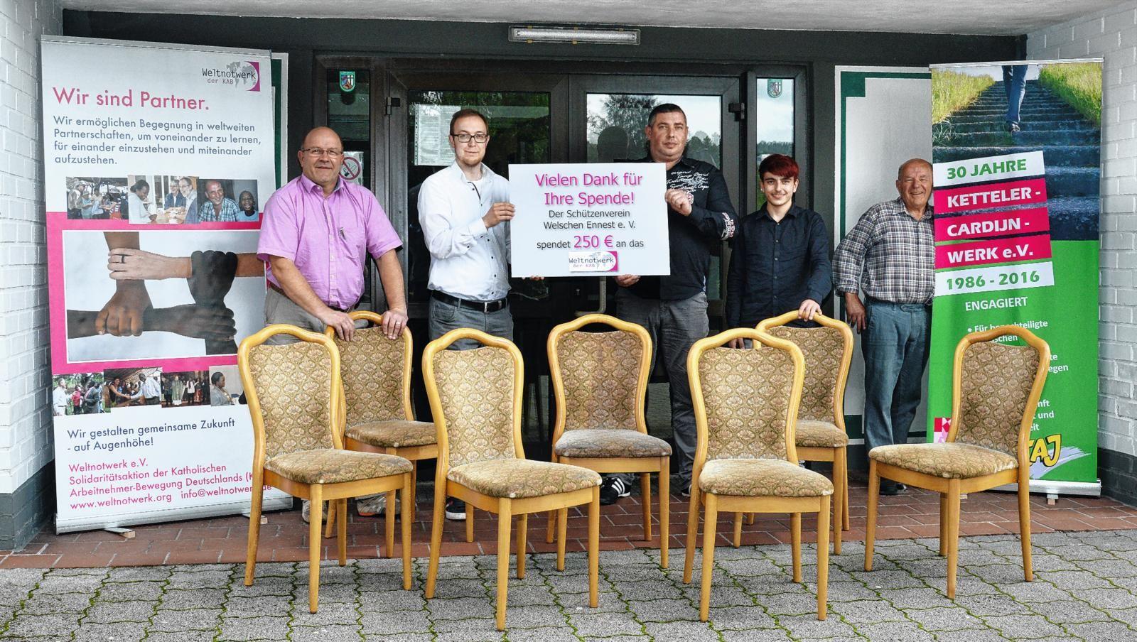 Welschen Ennest. Eine Spende über 250 Euro hat der Schützenverein Welschen Ennest an das Weltnotwerk der Katholischen Arbeitnehmer-Bewegung (KAB) überreicht. Das Weltnotwerk der KAB fördert in 17 Ländern in Afrika, Asien und Lateinamerika den Aufbau und die Stärkung von christlichen Arbeitnehmerorganisationen.
