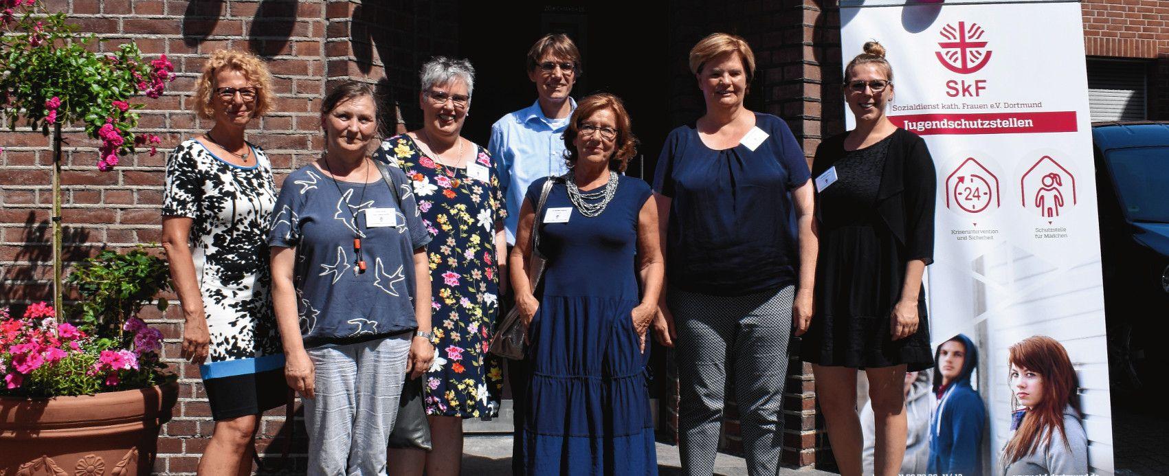 Freuen sich über die Eröffnung des neuen Mädchenschutzraumes: Dr. Annette Frenzke-­Kulbach (Leiterin des Jugendamtes Dortmund), Maria Daniel (Leitung Mädchenschutzstelle), Dr. Nicole Wolf (Vorstand SkF), Alwin Buddenkotte (Geschäftsführer SkF), Dr. Barbara Vosberg (Vorstand SkF), Christiane Schmöning (erste Vorsitzende SkF) sowie Laura-Maria Lintzen (stellvertretende Geschäftsführerin SkF, von links). Foto: SkF