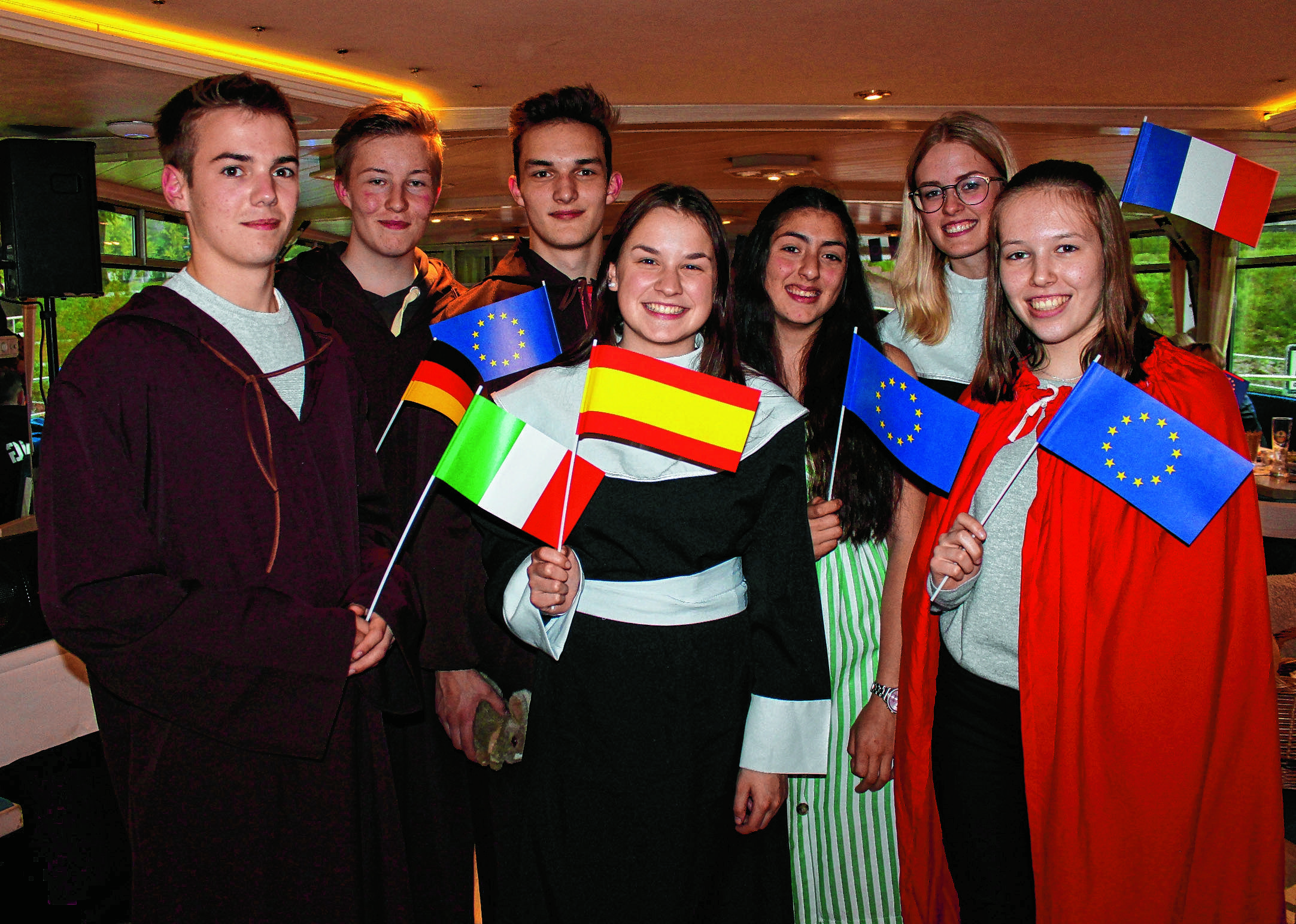 Begleitet wurde der Abend von Schülerinnen und Schülern des Gymnasiums Maria Königin. Sie stellten sieben Heilige dar, die mit ihrem Leben als Beispiele für gelebte europäische Werte wie Miteinander, Solidarität, Toleranz und die Bewahrung der Schöpfung dienen.