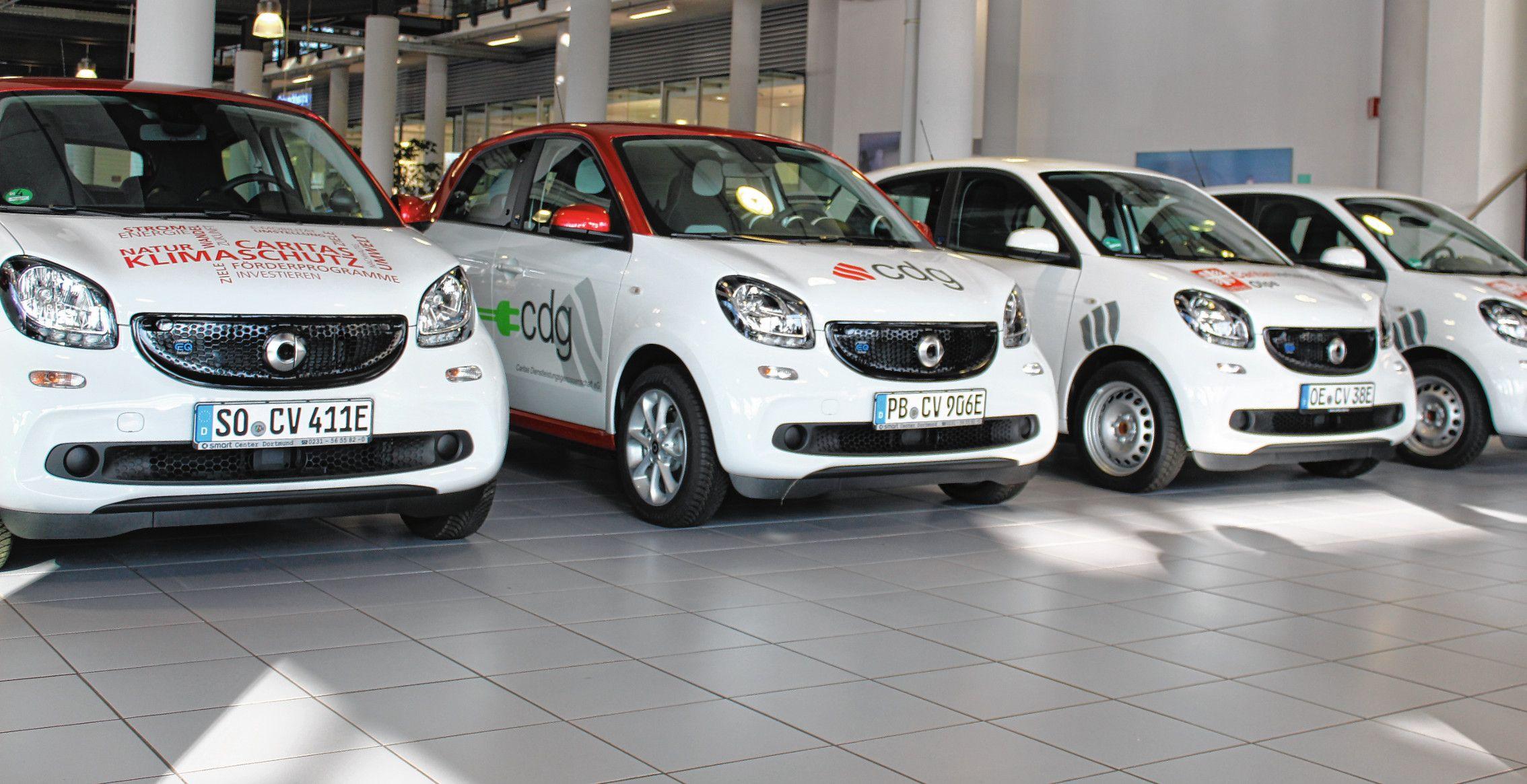 Olpe, Soest, Sauerland – die bereits zugelassenen Fahrzeuge in der Mercedes-Benz-Niederlassung ließen erahnen, wo die kleinen „Stromer“ ab sofort unterwegs sein werden. 25 Caritas-Verbände machen mit. Allen gemeinsam ist das große „E“ auf den Nummernschildern, das alle Fahrzeuge haben.