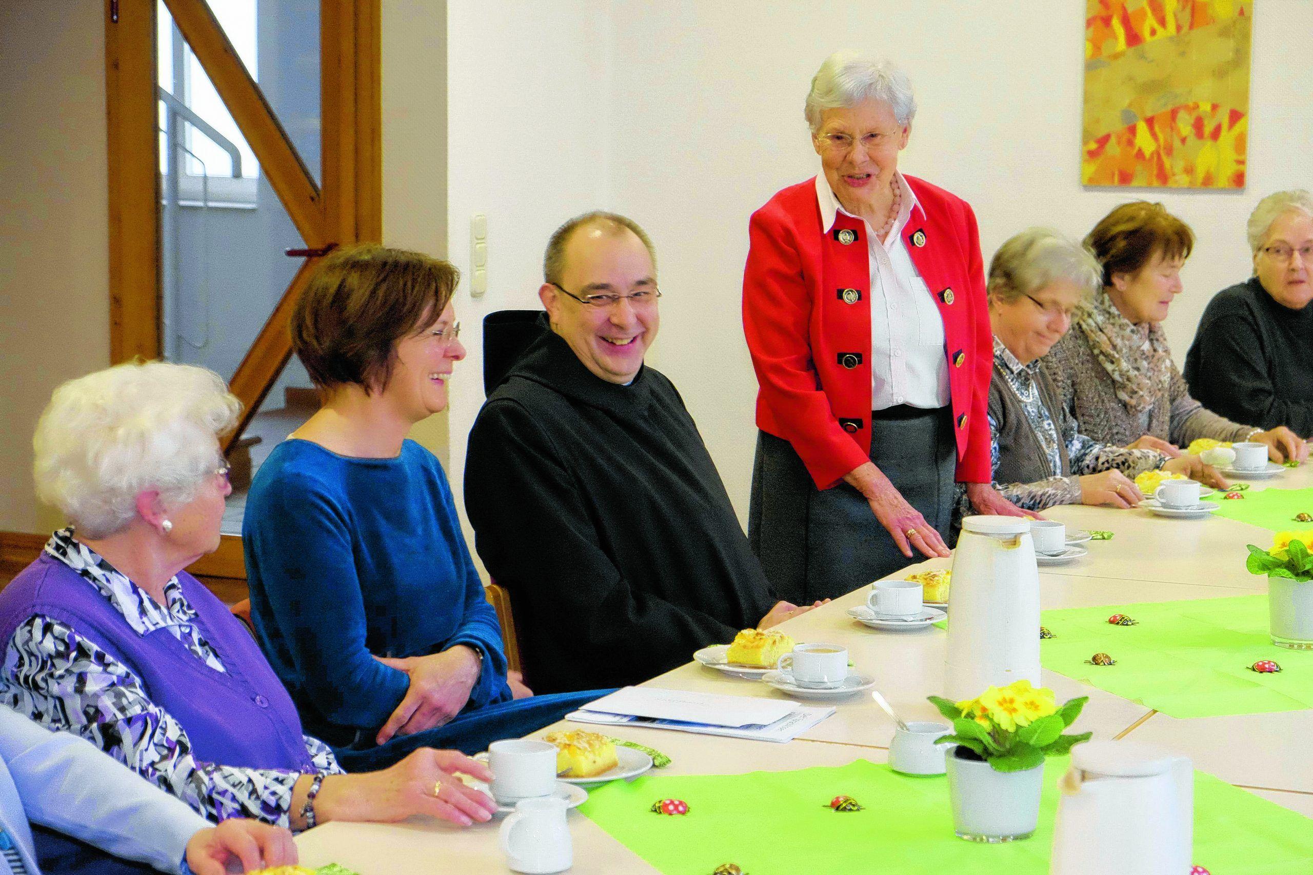 Maria Wilk, Leiterin des Kontaktkreises (stehend), begrüßte den besonderen Gast,Weihbischof Dominicus Meier. Foto: Thomas Wilk