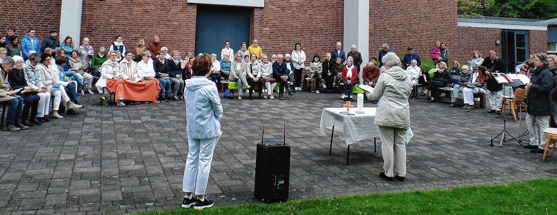 Unter freiem Himmel vor den Türen ihrer Kirche hielt auch die kfd St. Michael in Dortmund-Lanstrop einen Gottesdienst ab. Mit rund 120 Frauen, Männern, Jugendlichen und Kindern wurde ein Wortgottesdienst gefeiert, der zeitgleich zum Hochamt in der Kirche stattfand und ganz im Zeichen des Glaubens stand.