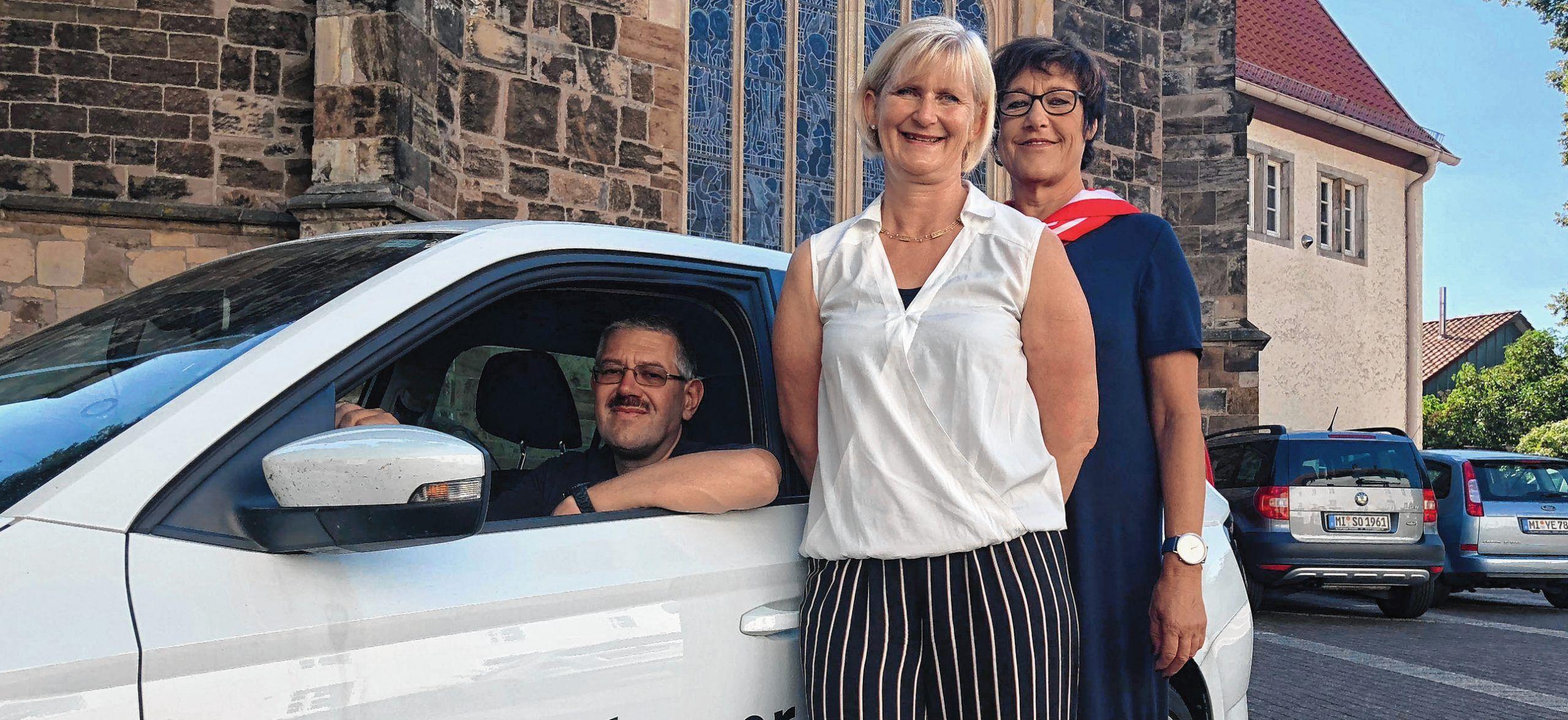 Suchen Ehrenamtliche und Fahrgäste für den „Mobilen Einkaufswagen“ in Minden (v. l.): Harald Kersebaum (Stadtbeauftragter der Malteser), Susanne Leimbach (Vorstand der Mindener Caritas) und Ilona Schäfer (Diözesanreferentin Soziales Ehrenamt der Malteser im Erzbistum Paderborn). Foto: Kaiser