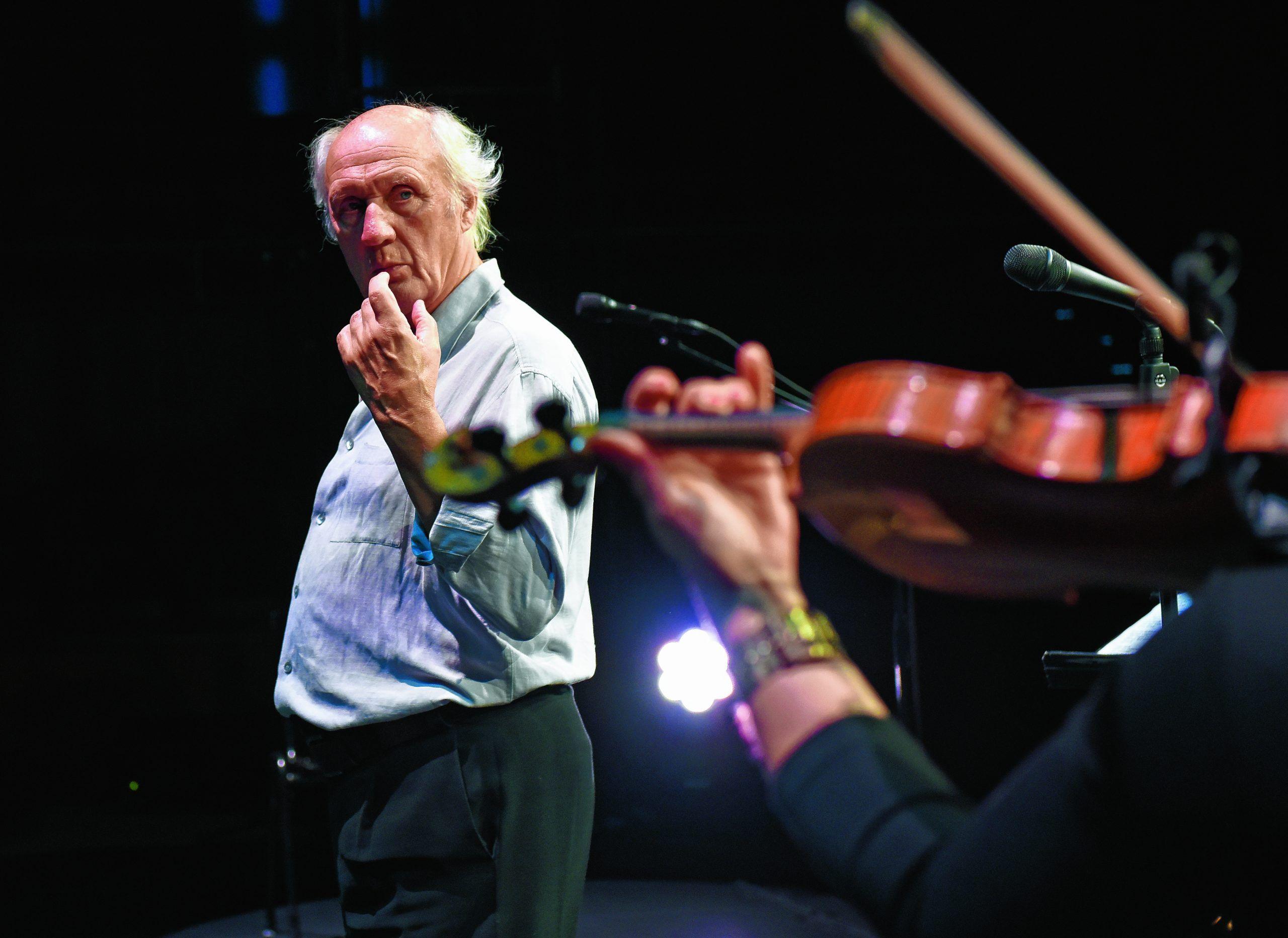 Wie klingt es? Passt die Abmischung? Können alle alles gut hören? Herman van Veen beim Soundcheck. Foto: dpa