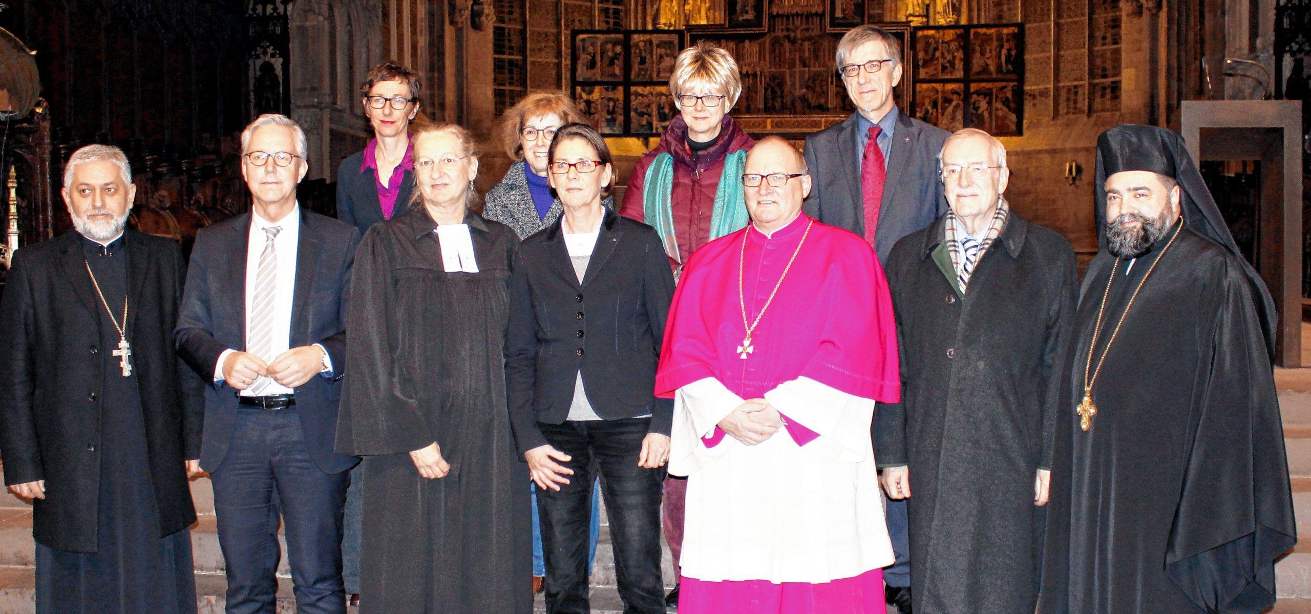 Zahlreiche Vertreter aus der Politik, aus Kultur und Religion trafen sich beim Reinoldustag 2019, dem ökumenischen Neujahrsempfang. Die neue Superintendentin Heike Proske (3. v. l., vordere Reihe) und Propst Andreas Coersmeier (3. v. r.) feierten den Gottesdienst. Foto: Maas