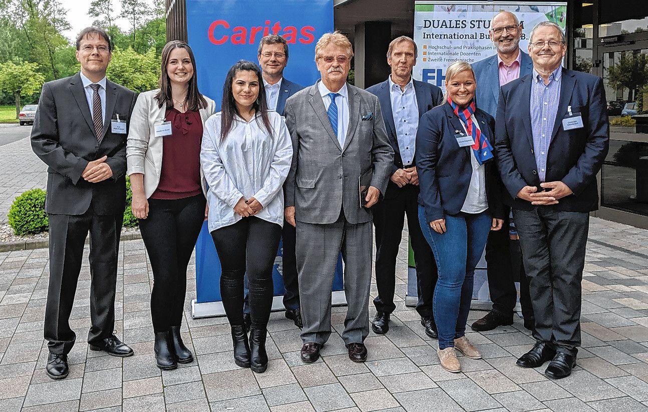Diskutierten den Mehrwert von Europa (von links): Prof. Dr. Micha Bergsiek (FHDW), Stephanie Quest, Birgül Cay, Uwe Kopp (GPM), Elmar Brok, Rüdiger Matisz (Agentur für Arbeit Paderborn), Simone Plätzmüller (Schmitz Cargobull AG), Friedhelm Evermann (St.-Johannes-Gesellschaft, Dortmund) und Christoph Eikenbusch (Diözesan-Caritasverband). Foto: FHDW