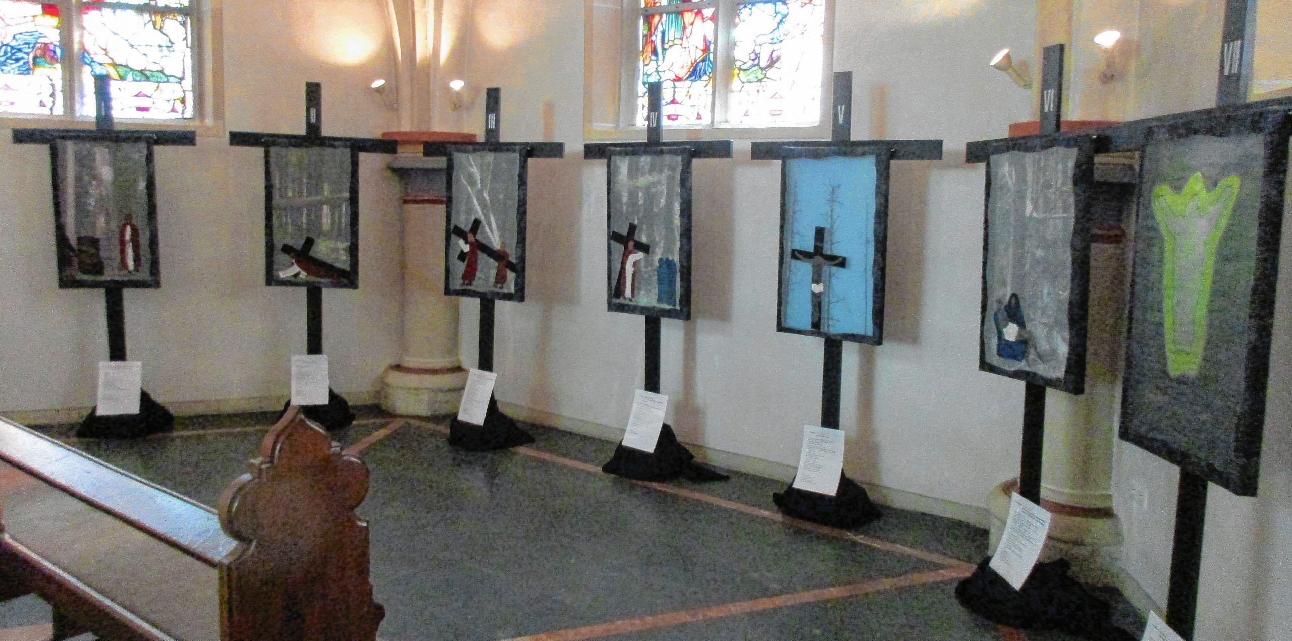 Der von Anni und Paul Strumann im vergangenen Jahr geschaffene Kreuzweg besteht aus sieben ausgewählten Stationen mit Quiltmotiven auf Fotoleinwand. Unter dem Thema „Vom toten zum lebenden Holz“ ist es dem Ehepaar gelungen, einen ganz besonderen Kreuzweg zu schaffen. Dabei haben sich die beiden nicht nur an das Geschehen vor 2 000 Jahren angelehnt, sondern die alltäglichen Kreuze unserer Zeit aufgenommen. Texthefte zur Meditation und zum Gebet stehen den Besuchern zur Verfügung. Informationen bei: Anni und Paul Strumann, Tel.: 0 29 23/10 49 Foto: Strumann