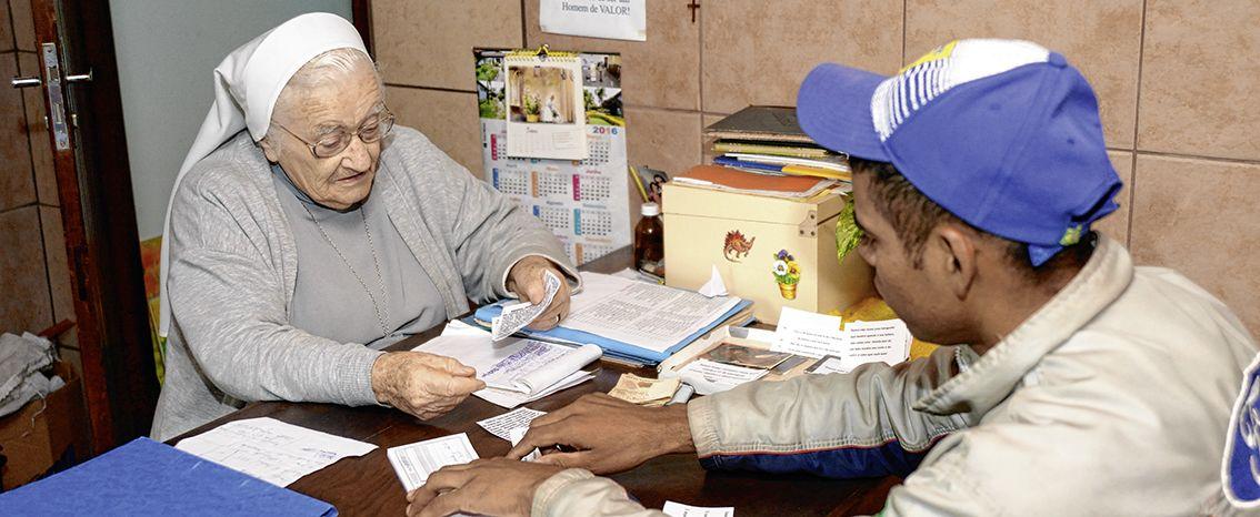 Brasilien: Schwester Maria Ludwigis Bilo empfängt in ihrem Büro Menschen in Notlagen, denen sie zu helfen versucht.Foto: Florian Kopp