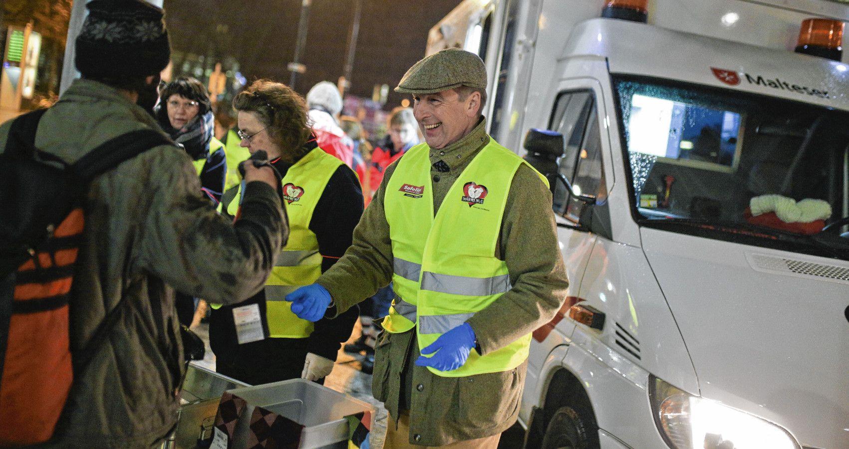 Warme Suppe und Wintersocken hatten die Helfer für die obdachlosen Menschen an Bord. Foto: Simon Jost