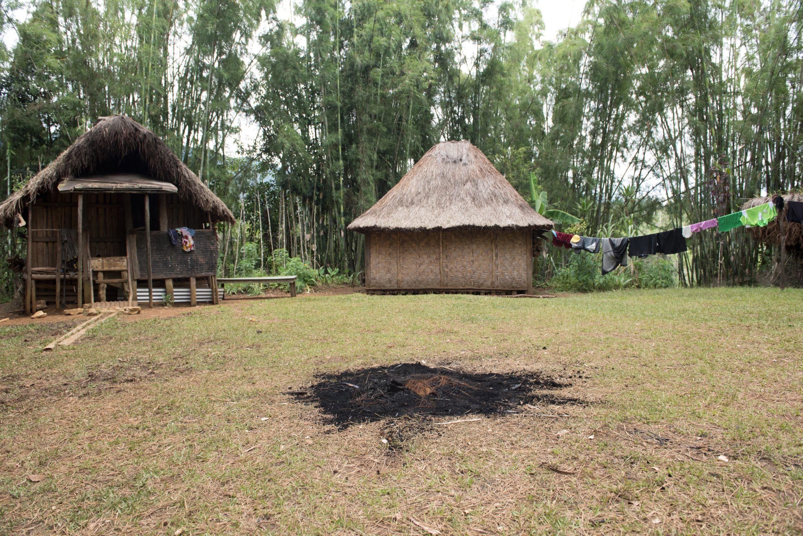 Platz in Oyraip, Dorf in der Nähe der Stadt Mendi in der südlichen Hochebene von Papua Neuguinea Hier wurden zwei Frauen, Teno und Betty, als vermeintliche Hexen gefoltert. 2/2017