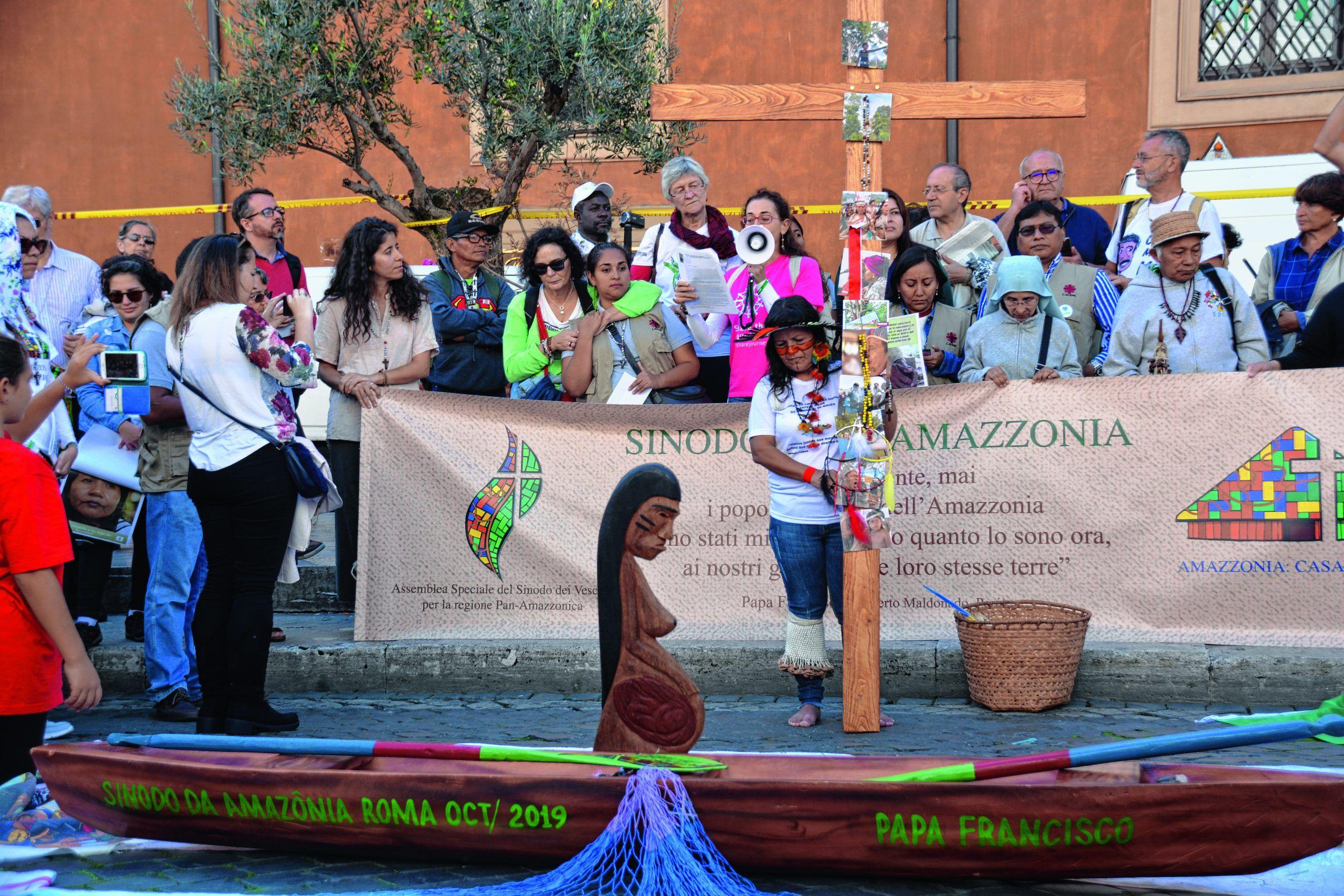 Während der Amazonas-Synode in Rom: Ein Vertreter der Indigenen sagte damals über die Enzyklika: „Der Papst hat zwar eine andere Hautfarbe als wir, aber er ist einer von uns, er versteht uns.“ Foto: MISEREOR