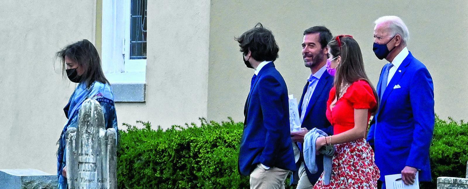 Der Glaube spielt im Leben des amtierenden US-Präsidenten (r.) eine große Rolle: Das Bild zeigt ihn am vergangenen Sonntag bei der Konfirmation seines Enkels.