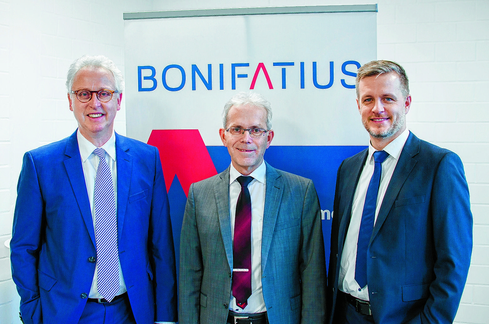 Blicken zuversichtlich auf das Jubiläumsjahr zum 150-jährigen Bestehen der Bonifatius GmbH: Rolf Pitsch, Dr. Richard Böger und Tobias Siepelmeyer (v. l.).
