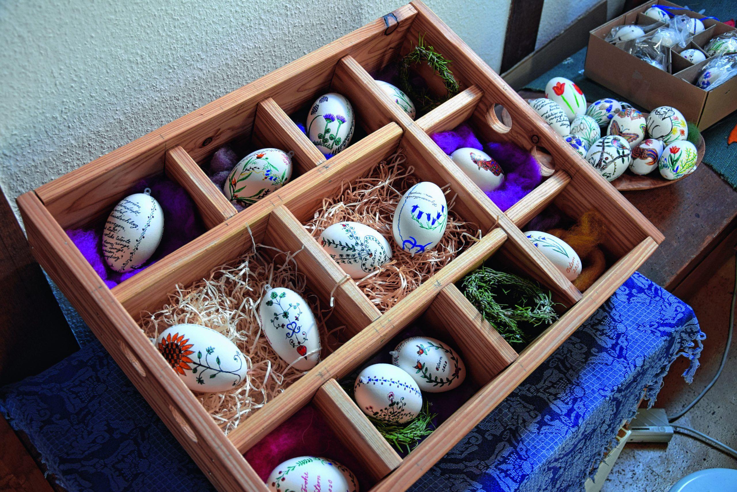 Neben den selbstgestalteten Osterkerzen wurden auch erstmals handbemalte Ostereier für den guten Zweck verkauft. Foto: Annabell Jatzke