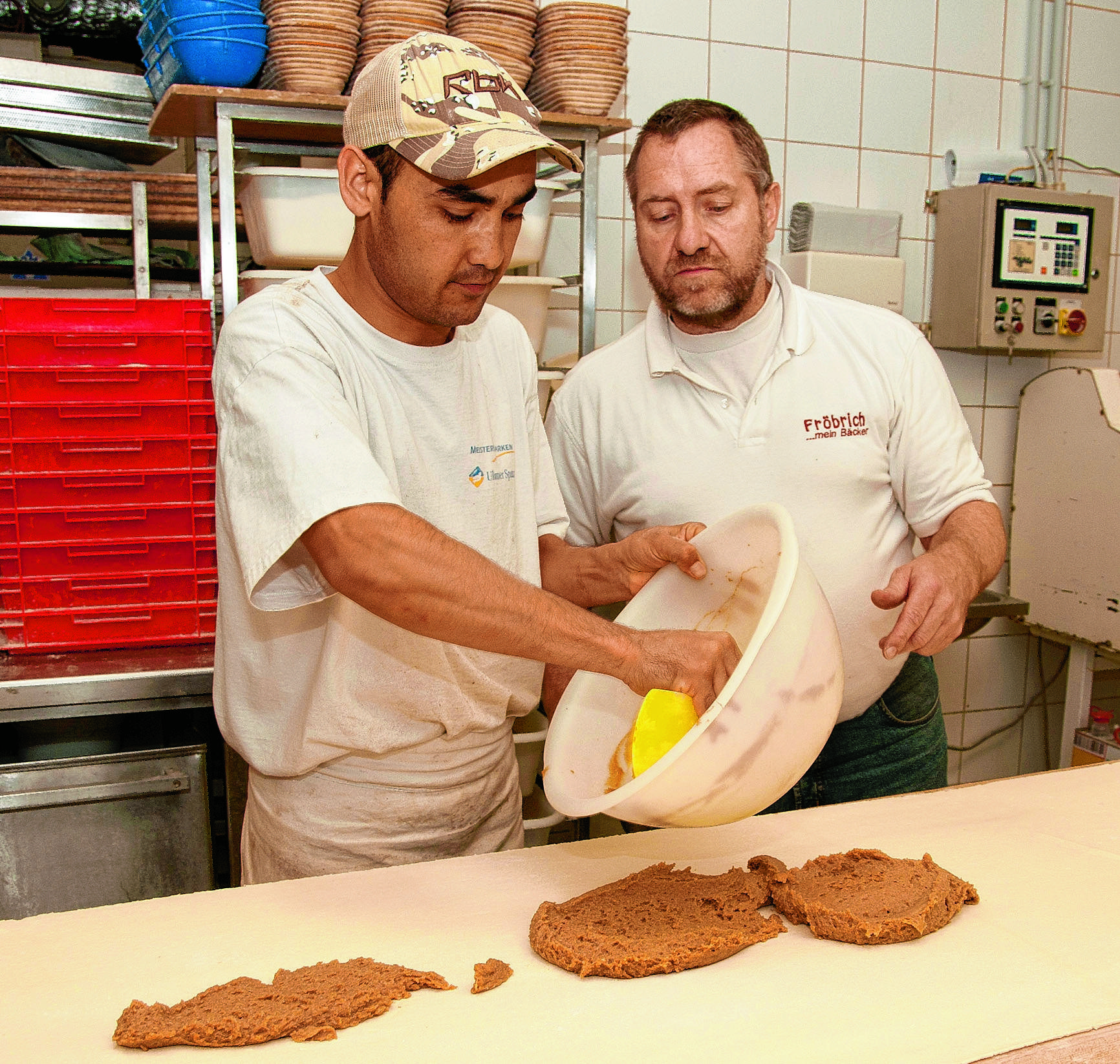 Bäckermeister Thomas Fröbrich ist zufrieden mit seinem neuen Auszubildenden Fahat Rezai. Und der ist glücklich, dass die Ausländerbehörden ihm die Ausbildung doch noch gestattet haben.