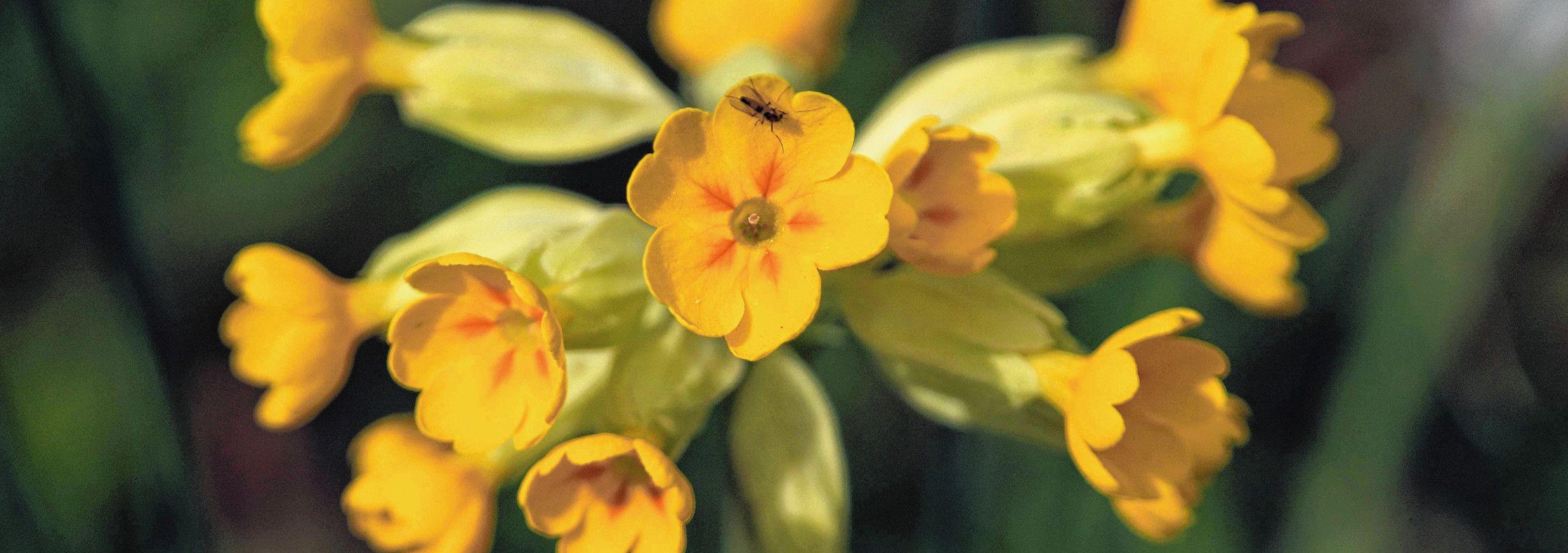 Primula veris, die echte Schlüsselblume, auch genannt Himmelsschlüssel. Zu ihren Erkennungsmerkmalen gehören der Wohlgeruch und die orangefarbenen Tupfer, die sogenannten Saftmale, die für den Duft sorgen. Foto: dpa