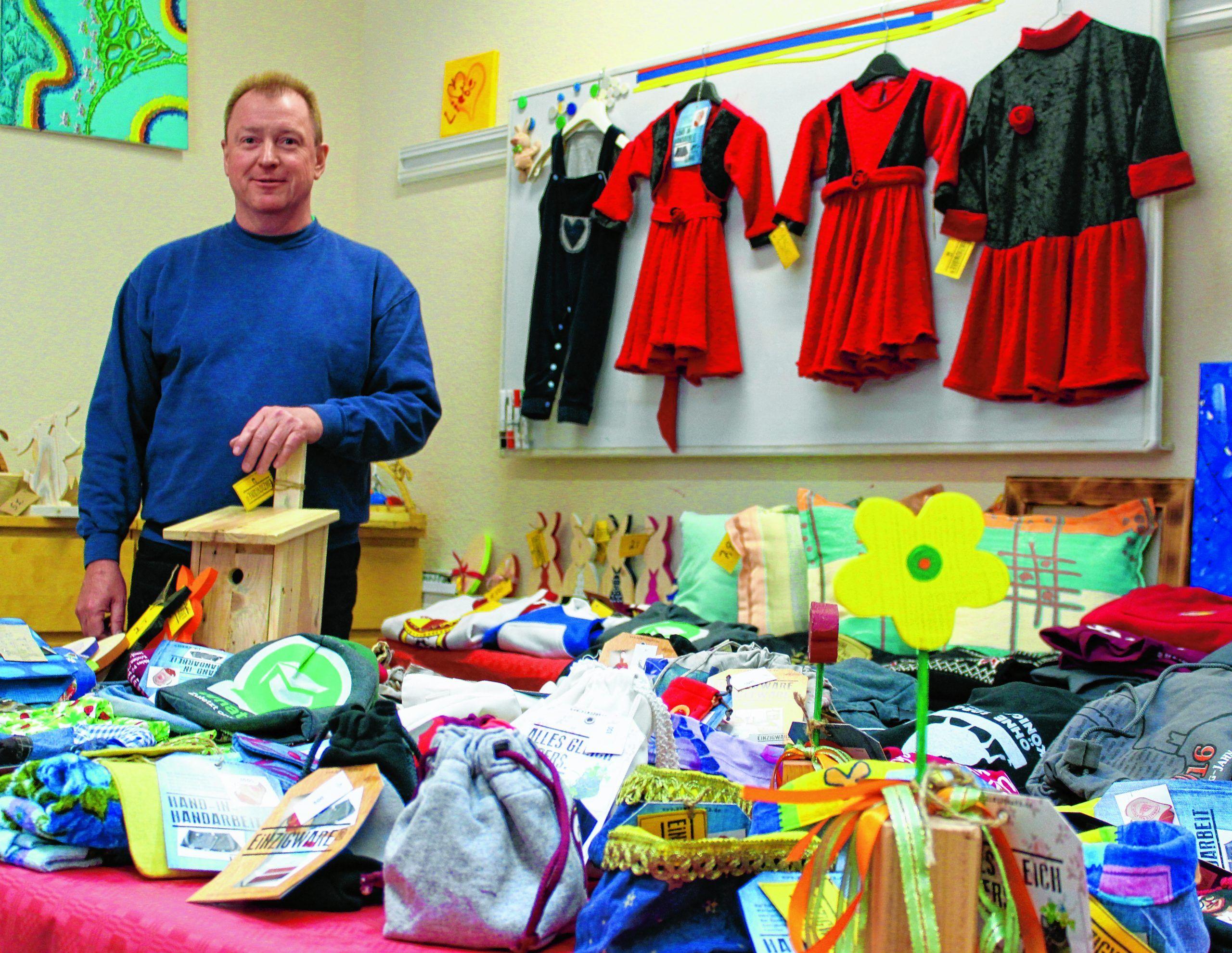 Jürgen Stein vom Dortmunder Einzigware-Team zeigt, was aus altem Stoff alles entstehen kann. Fotos: Maas