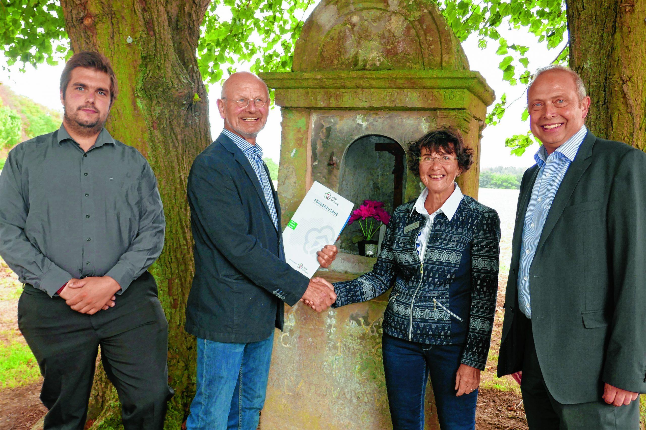 Andreas Bräker, Gerhard Henneke, NRW-Stiftung-Regionalbotschafterin Angelika Hummelsheim und Klaus Neuhaus (v. l.) freuen sich über einen weiteren Förderbeitrag. Foto: Priesnitz