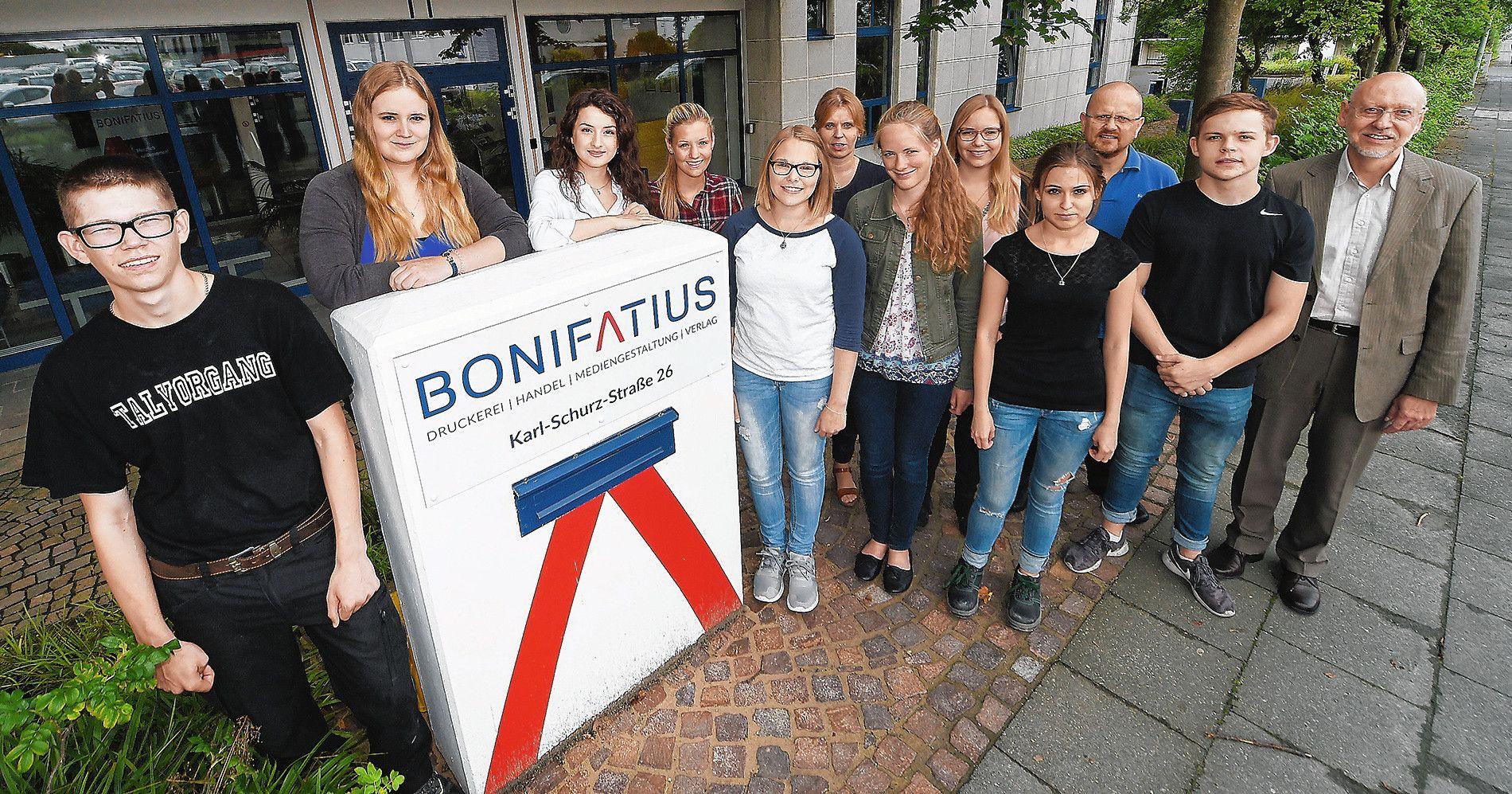 Paderborn. Zehn junge Leute haben jetzt ihre Ausbildung bei der Bonifatius GmbH begonnen. Prokurist Klaus-Dieter Gückel, Betriebsratsvorsitzender Lucius Ledwinka und Personalsachbearbeiterin Mechthild Wibbeke begrüßten sie an ihrem neuen Arbeitsplatz.