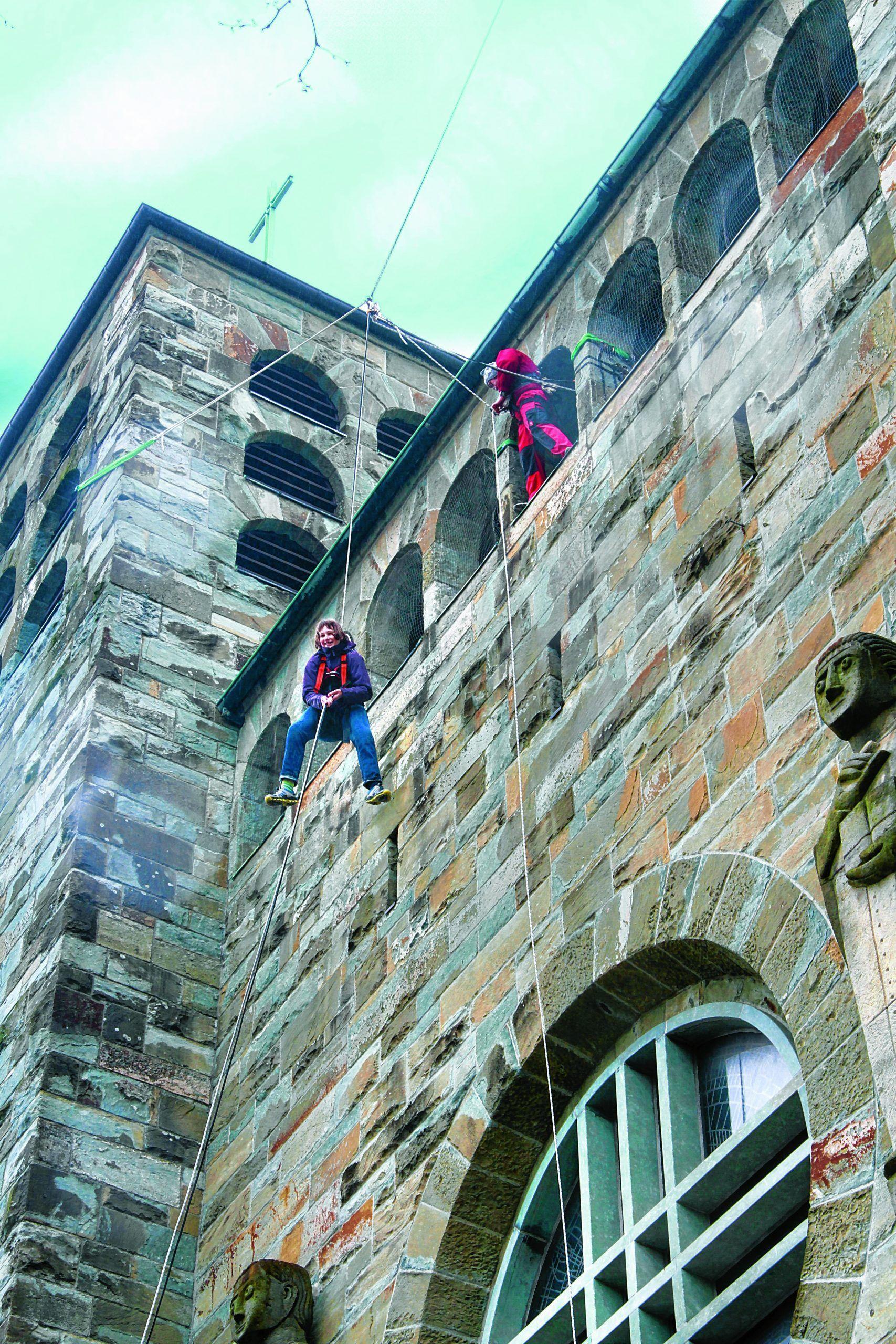 Ein unvergessliches Erlebnis war das Abseilen vom Dach der Kirche St. Katharina. Foto: Plamper