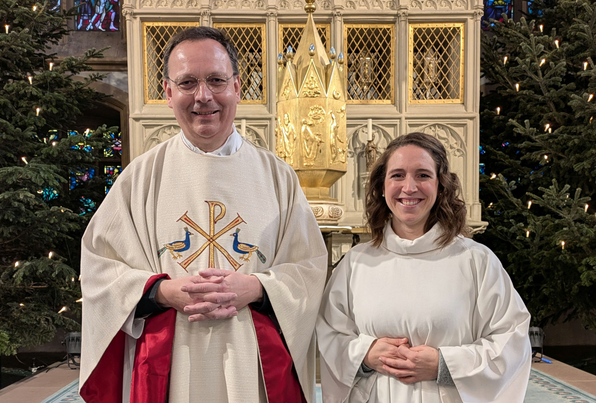 Domdechant Dr. Gregor Tuszynski führt Joana Drießen als erste Gemeindereferentin am Hohen Dom zu Paderborn ein.