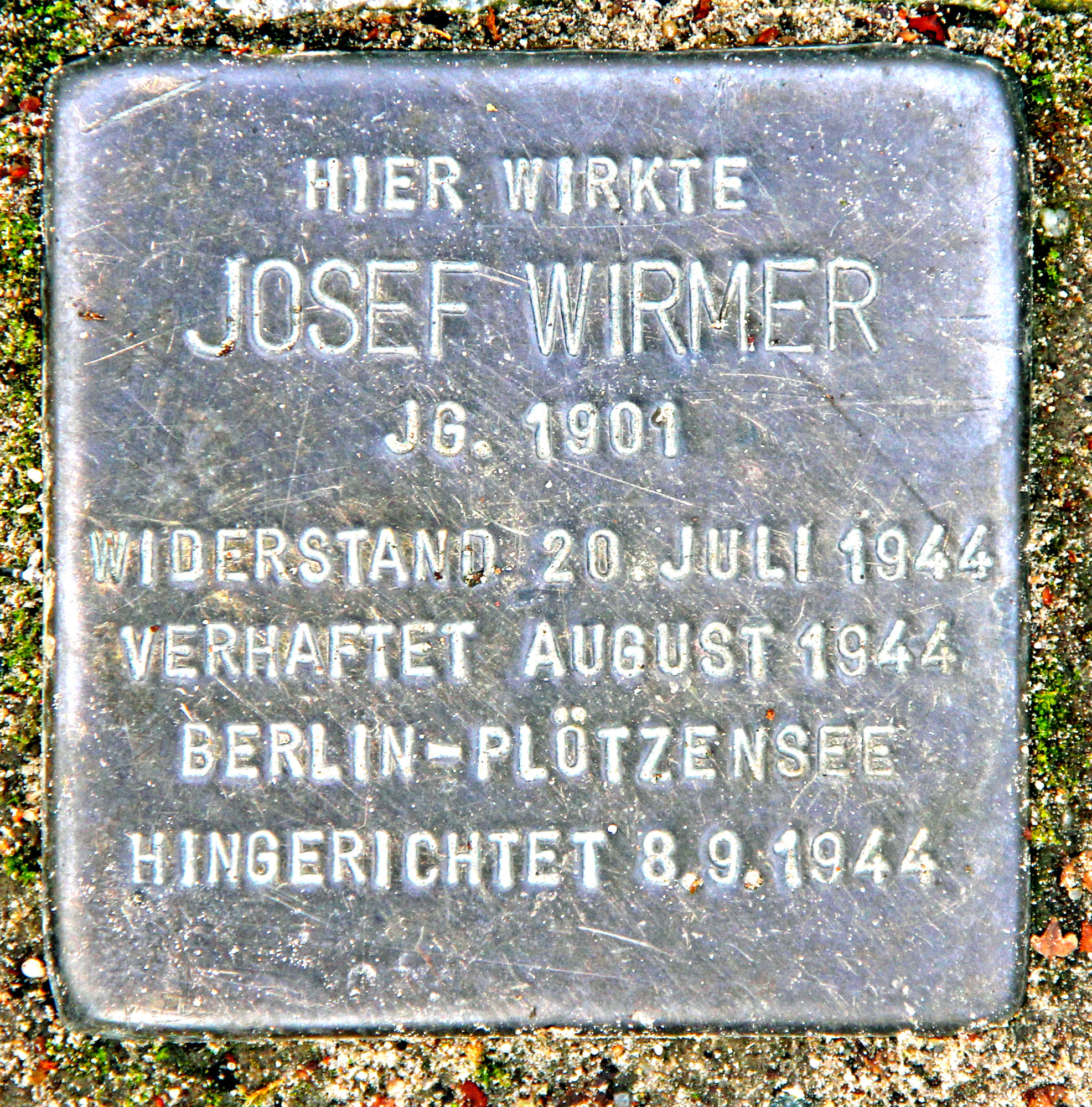Am 4. August 1944 hatte die Gestapo Josef Wirmer in Berlin als Mitverschwörer des Attentats auf Hitler am 20. Juli 1944 verhaftet. In den knapp zwei Wochen vor der Festnahme hatte er, obwohl seit dem 1. August steckbrieflich gesucht, wichtige Mitverschwörer getroffen, konspirative Arbeit geleistet und Nachrichten überbracht. Eine Flucht ins Ausland hatte er ausgeschlossen, weil er seine Frau Hedwig und die drei Kinder Maria, Johanna und Anton nicht der Sippenhaft aussetzen wollte.