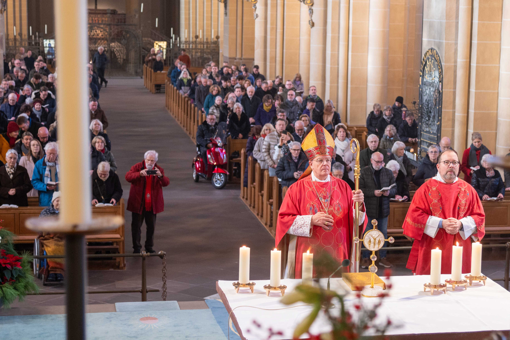 „Das göttliche Kind bringt Friede und Versöhnung – das feiern wir an Weihnachten. Feiern wir in diesem Gottesdienst, dass Gott zu uns steht und uns begleitet“, sagte Weihbischof Matthias König zum Abschluss seiner Einführung.