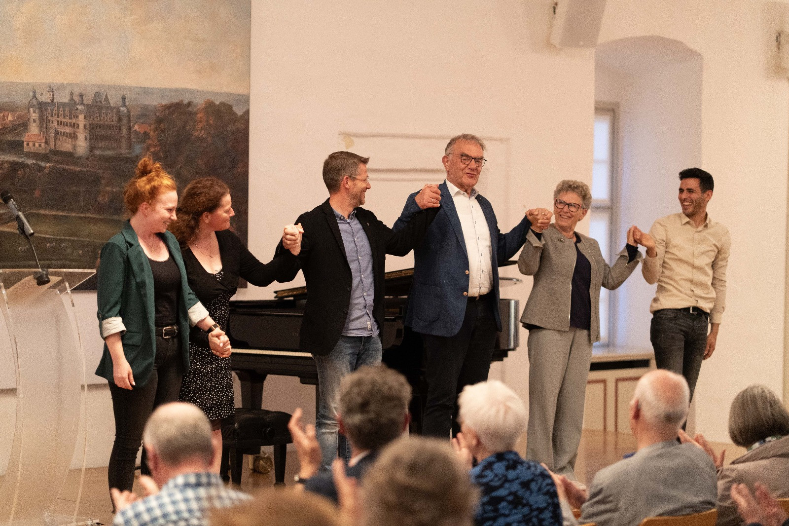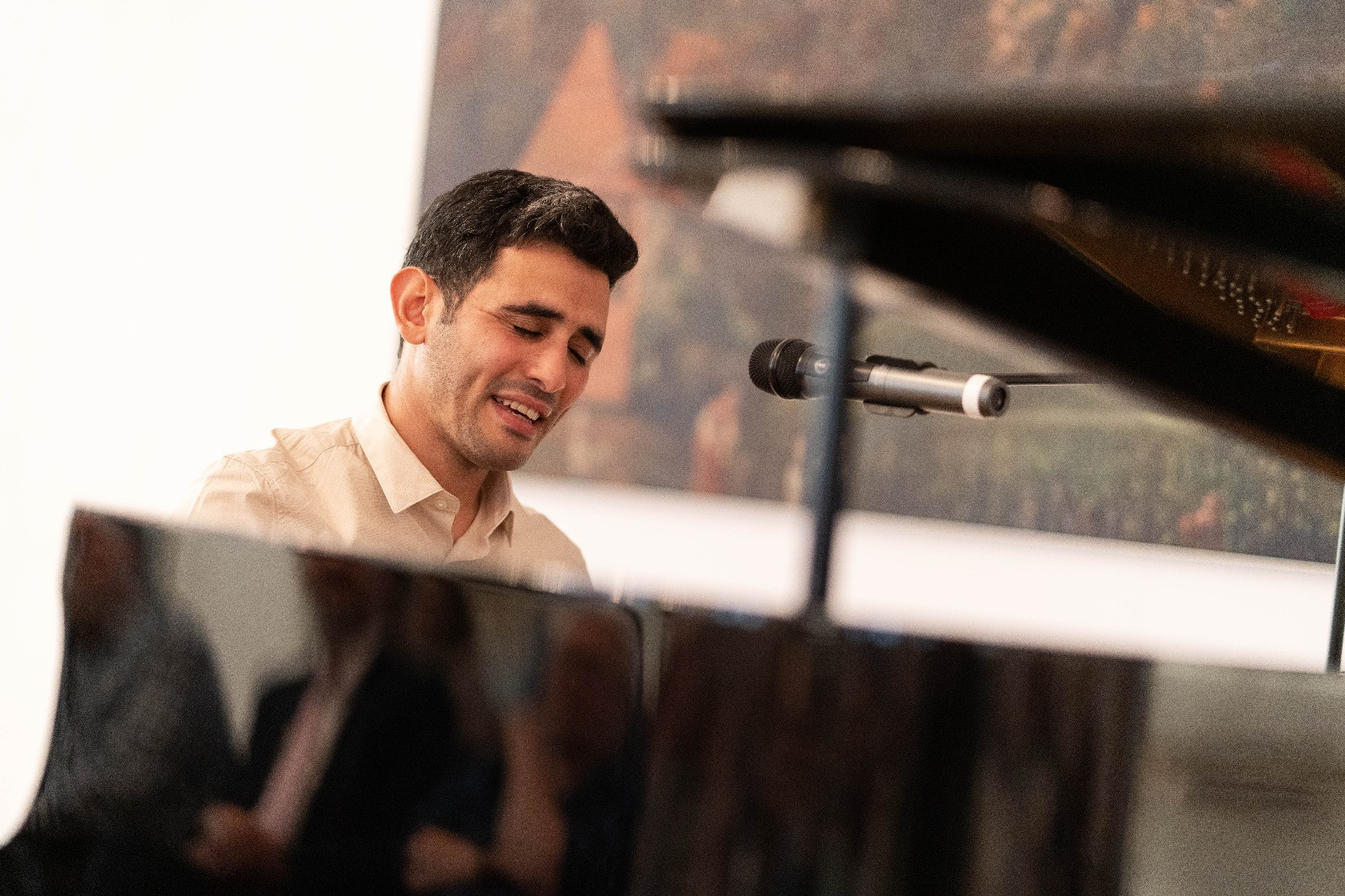Am 8. Mai, dem 80. Jahrestag der Erinnerung an die Befreiung vom Faschismus in Deutschland, gab der international bekannte Pianist Aeham Ahmad im Spiegelsaal des Neuhäuser Schlosses ein Konzert.