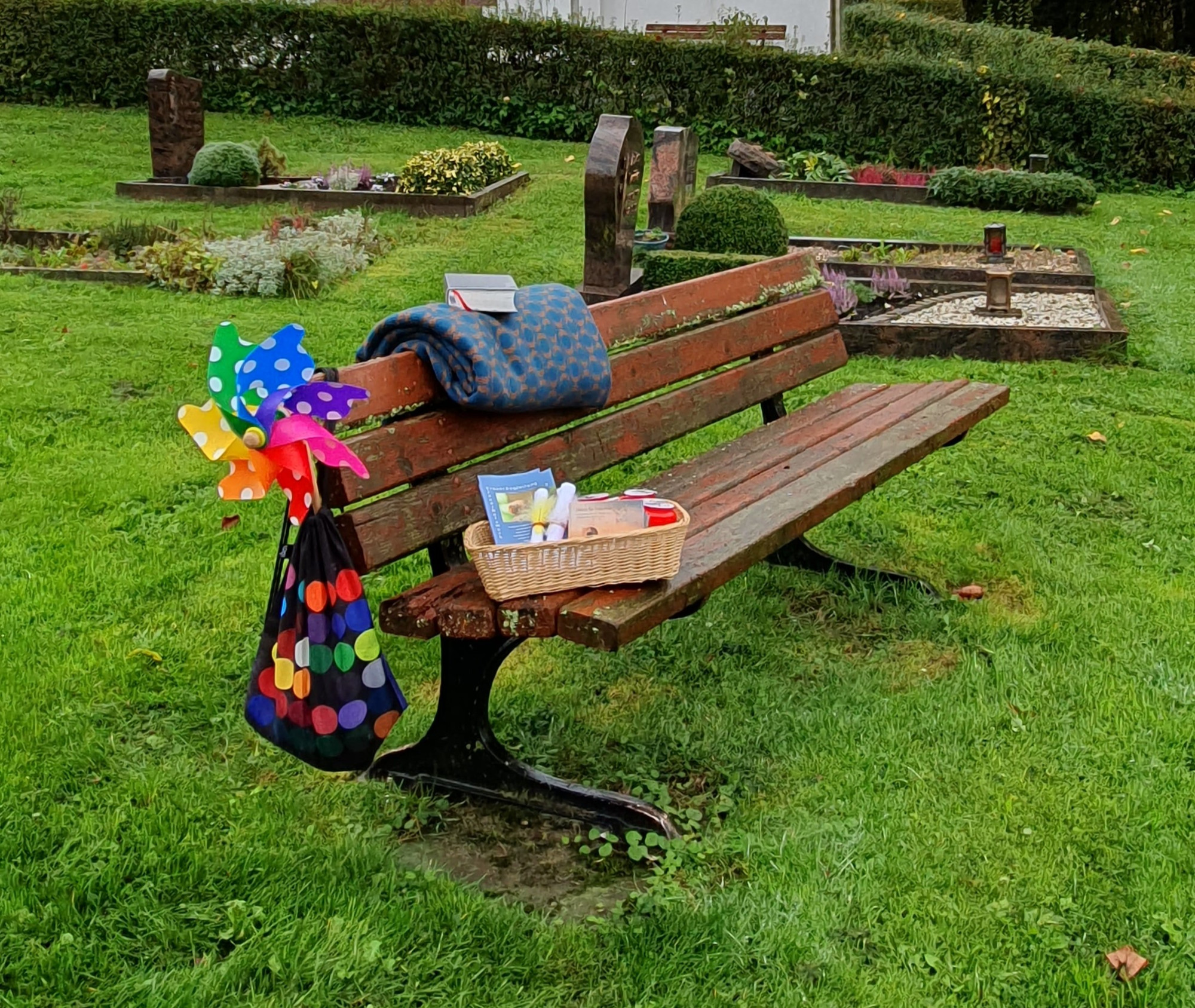 „Ich habe Zeit für Sie – zum Reden, für einen gemeinsamen Weg zum Grab, zum Erinnern, für ein Gebet.“ Zu erkennen ist sie an ihrem bunten Rucksack mit der Windmühle, mit dem sie bereits häufiger in den Straßen der Stadt und den Dörfern unterwegs war. Wo vorhanden, wird sie auf einer „Bank der Begegnung“ zu finden sein.