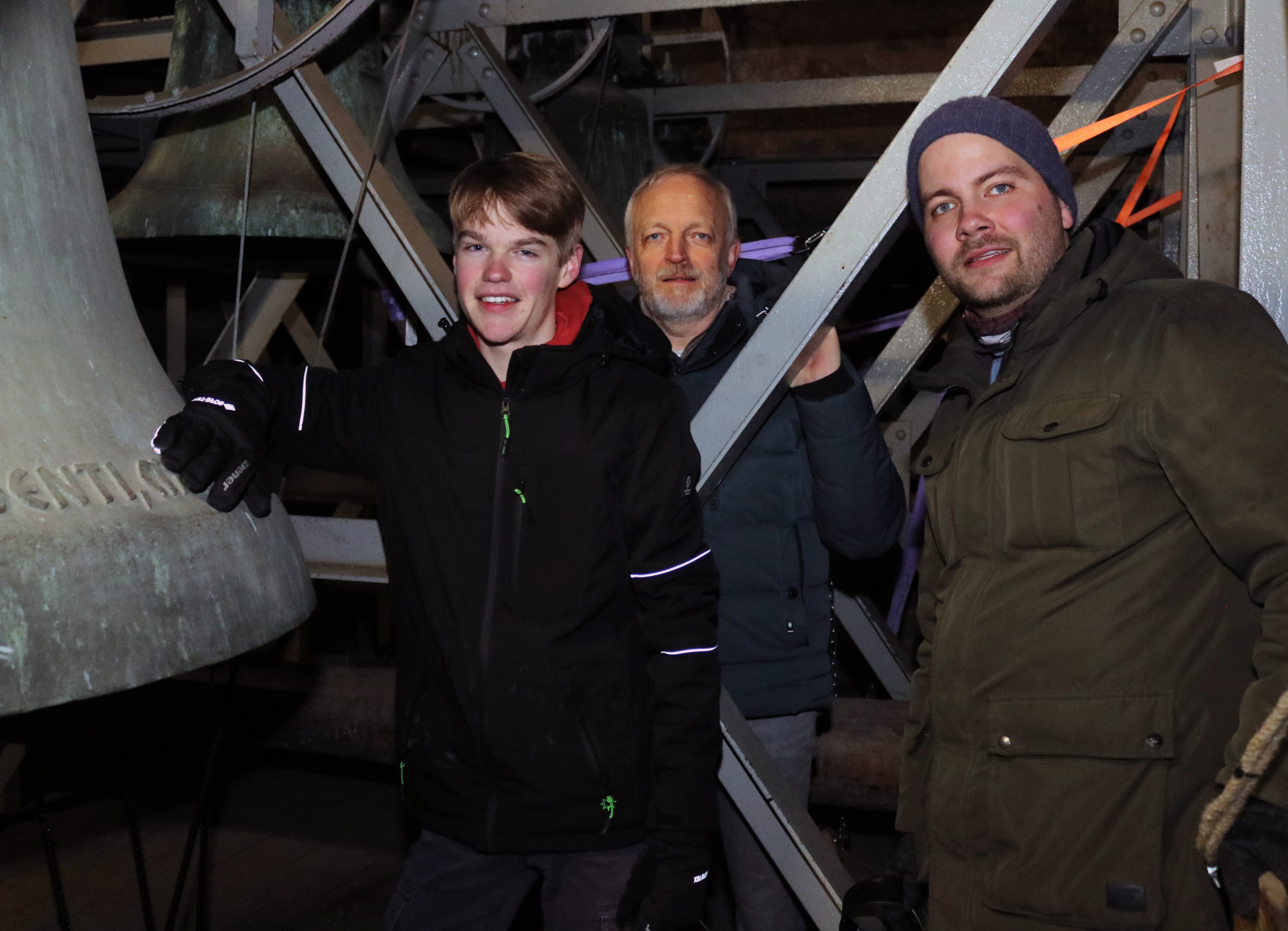 Sein Wunsch ist es, auch andere Innenstadt-Kirchen hin und wieder einzubeziehen. „Wir wollen den Menschen in der Stadt die Vielfalt der Klänge zu besonderen Anlässen zu Gehör bringen“, sagt der Dechant. Mit seiner Idee traf er beim mittlerweile eingespielten Paderborner Beier-Team auf offene Ohren. Schließlich ist es durchaus reizvoll, die unterschiedlichen mittelalterlichen Kirchtürme auf diese Weise zu erkunden. Zuletzt stand dabei die Gaukirche St. Ulrich am Marktplatz im Mittelpunkt. Da deren Geläut aber nach wie vor im regulären Dienst ist, galt es, für die Übungsstunden und das Konzert die Automatik mittels Schalter in den Pausenmodus zu führen. Anschließend befestigten die Musiker ihre Seilkonstruktion – das gelingt mit ein wenig Übung in wenigen Minuten – und brachten die still hängenden Glocken wohldosiert zum Erklingen.