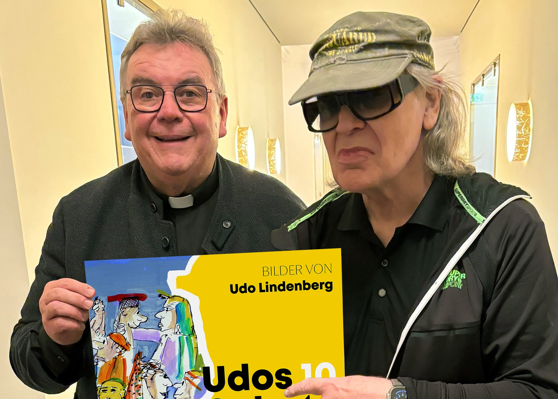 Die Ausstellung „Udos 10 Gebote“ von Udo Lindenberg in der St.-Severi-Kirche ist während des Katholikentags von 10 bis 22 Uhr geöffnet. Der Eintritt ist frei, um Spenden für karitative Projekte wird gebeten. Das Bonifatiuswerk bietet für Gruppen Führungen an, zu denen man sich auf www.bonifatiuswerk.de/fuehrung anmelden kann. Der Bilderzyklus des 77-jährigen Panikrockers ist über den Katholikentag hinaus von Montag, 27. Mai, bis Sonntag, 9. Juni, täglich von 10 bis 18 Uhr zu sehen. Während des gesamten Ausstellungszeitraums wird um 12 Uhr ein gemeinsames Mittagsgebet in der St.-Severi-Kirche angeboten.