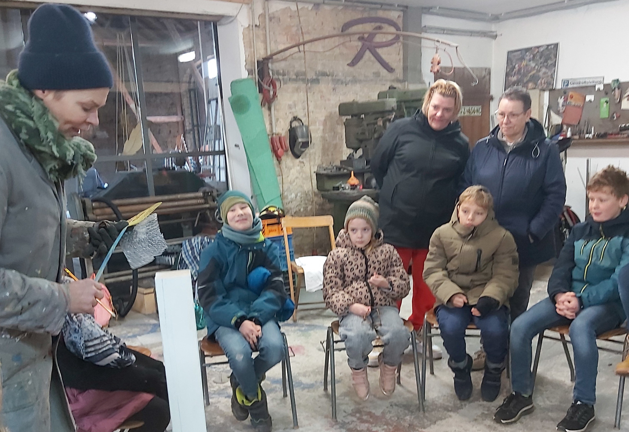 „Geht mal in Gedanken durch eure Kirche. Was gibt es denn da alles zu entdecken?“ Nur kurz währte der Moment des Nachdenkens der zehn Kinder, bevor die Reaktionen sprudelten: Taufbecken, Bilder von Jesus, Kerzen und Kreuze waren einige der Antworten, die im Atelier T8 in Lippstadt-Dedinghausen fielen. Begrüßt wurden sie dort von Katinka Winz, Künstlerin mit einem Herz für ihr Metier. Vorbereitet hatte sie bereits Holzstelen, die nun in die Hände der Kommunionkinder übergeben wurden. Gut zwei Stunden hatten sie Zeit, daraus kleine Kunstwerke zu erstellen.
