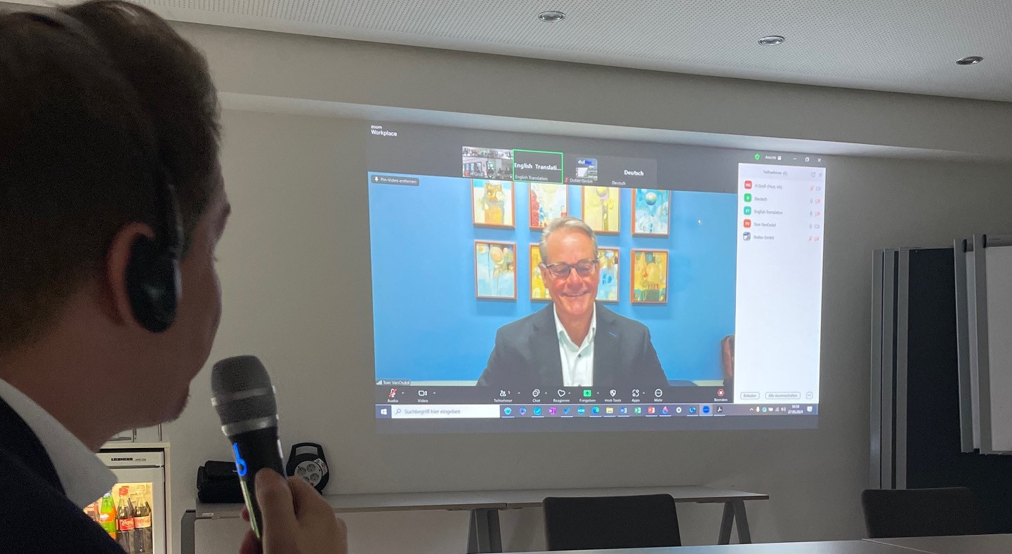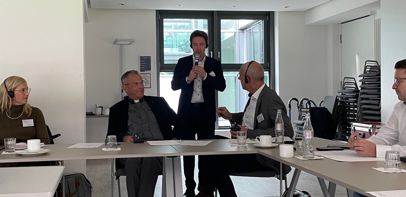 Tom VanOsdol, Chief Mission Officer bei Ascension (USA) und President und CEO von Ascension Florida und der Golf Küste, war online dazugeschaltet. Er berichtete über das katholische Profil, Leitbild, Mission, Vision und Werte von Ascension. Dank zweier Simultan-Dolmetscherinnen konnten die Teilnehmenden seinen Ausführungen auf Deutsch zuhören, angesichts des Fachvokabulars eine große Unterstützung.